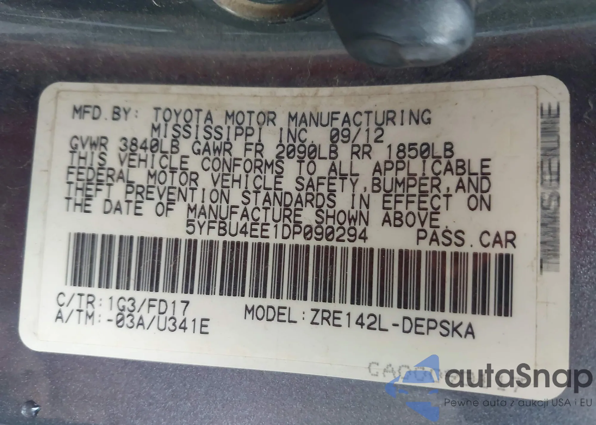 Samochód Toyota Corolla 2013 (VIN 5YFBU4EE1DP090294) nie był wcześniej licytowany. Dokumenty są czyste, przebieg odpowiada lub jest niższy niż średnia rynku. Sprzedaje go firma ubezpieczeniowa – polecamy zakup. Dostawa do portu zajmie ok. 6–8 tygodni.