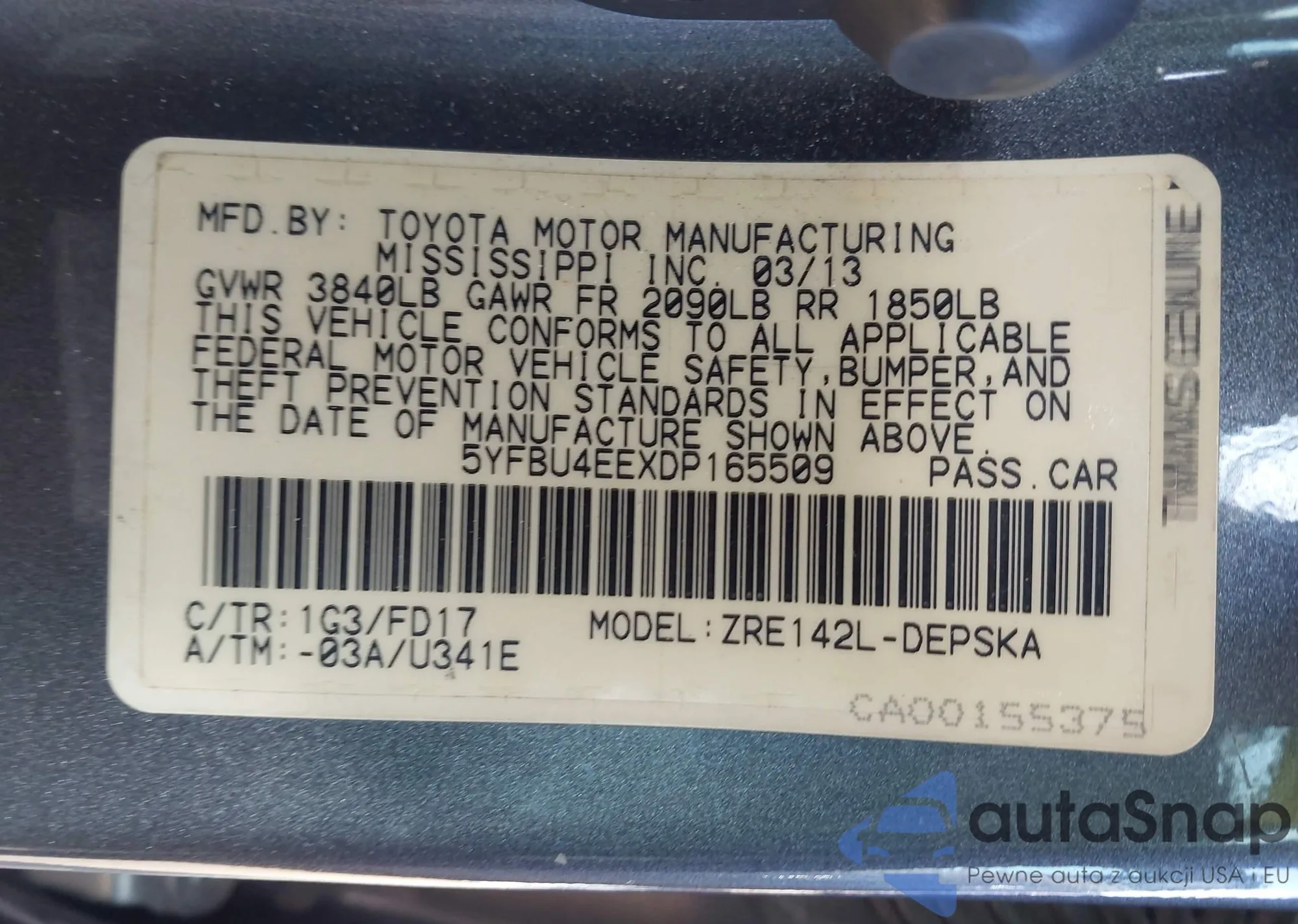 Samochód Toyota Corolla 2013 (VIN 5YFBU4EEXDP165509) nie był wcześniej licytowany. Dokumenty są czyste, przebieg odpowiada lub jest niższy niż średnia rynku. Sprzedaje go firma ubezpieczeniowa – polecamy zakup. Dostawa do portu zajmie ok. 6–8 tygodni.