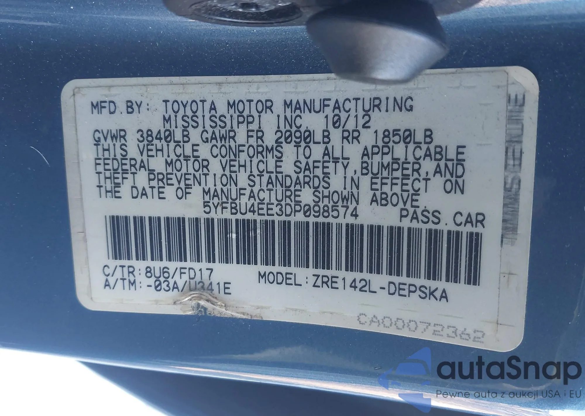 • VIN: 5YFBU4EE3DP098574