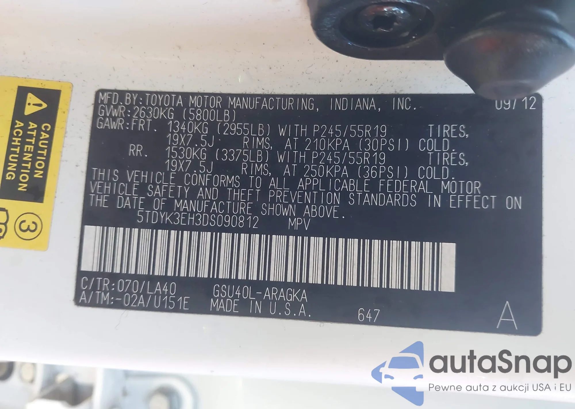 Samochód Toyota Highlander 2013 (VIN 5TDYK3EH3DS090812) nie był wcześniej licytowany. Dokumenty są czyste, przebieg odpowiada lub jest niższy niż średnia rynku. Sprzedaje go firma ubezpieczeniowa – polecamy zakup. Dostawa do portu zajmie ok. 6–8 tygodni.