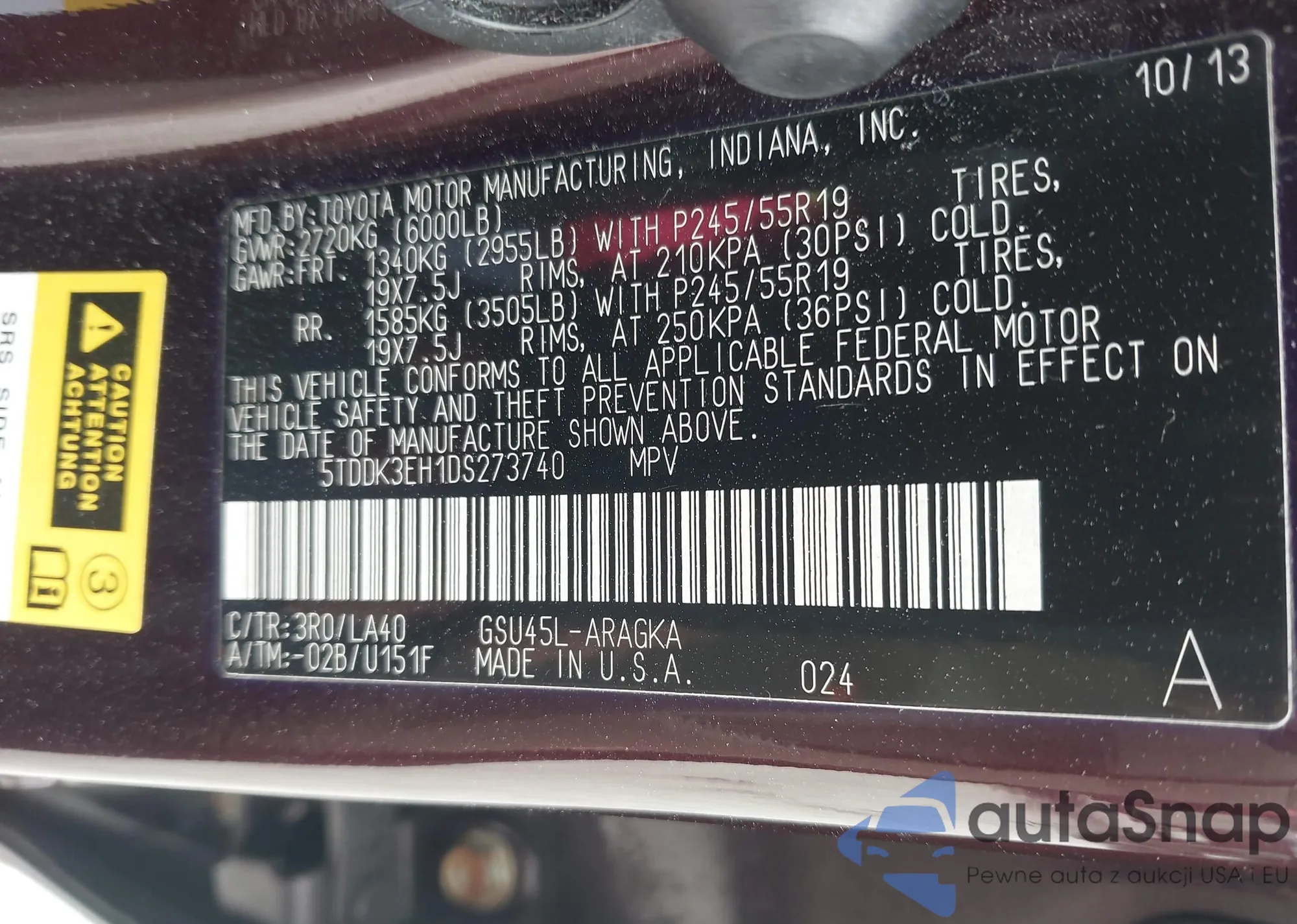 VIN: 5TDDK3EH1DS273740