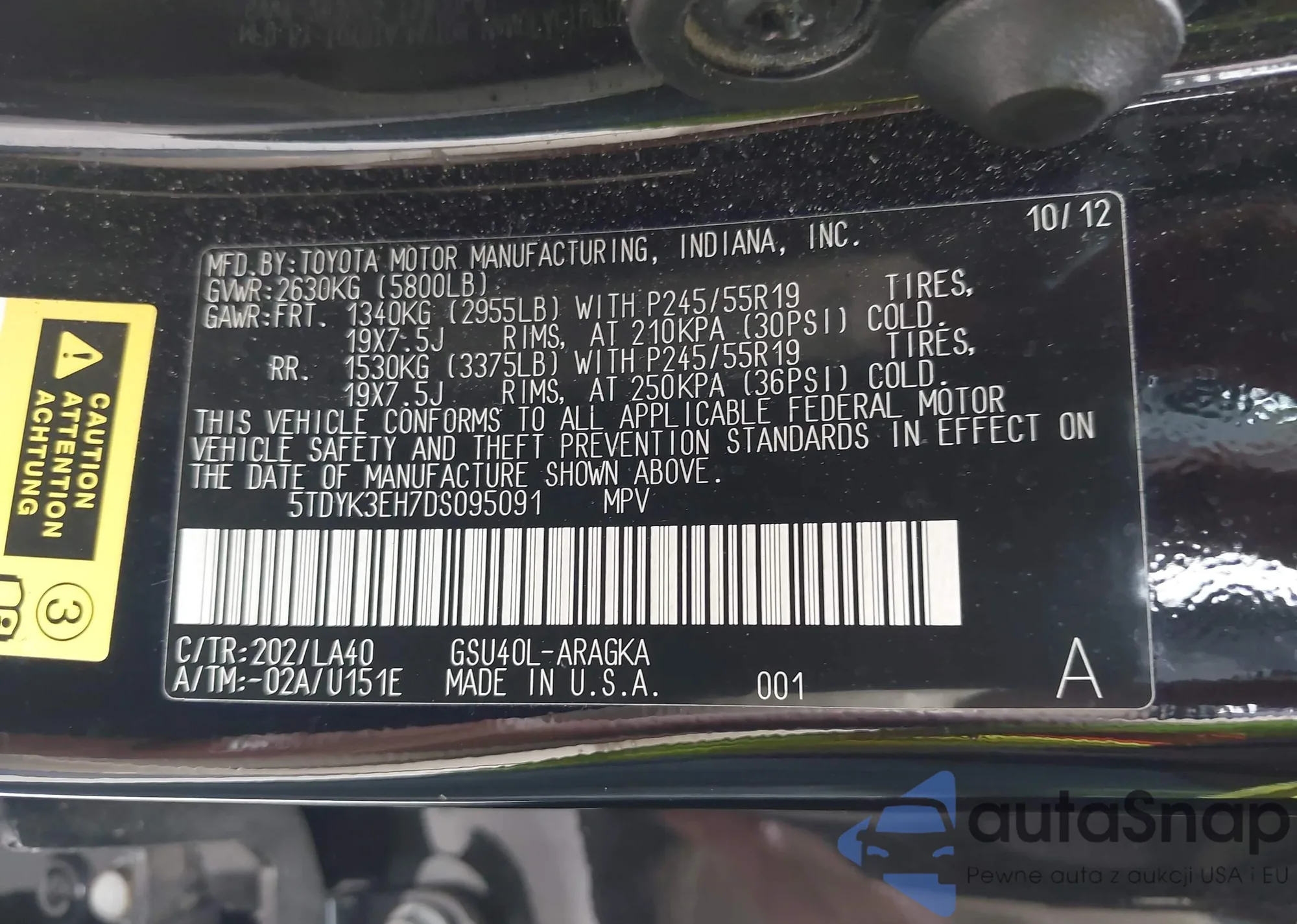 VIN: 5TDYK3EH7DS095091