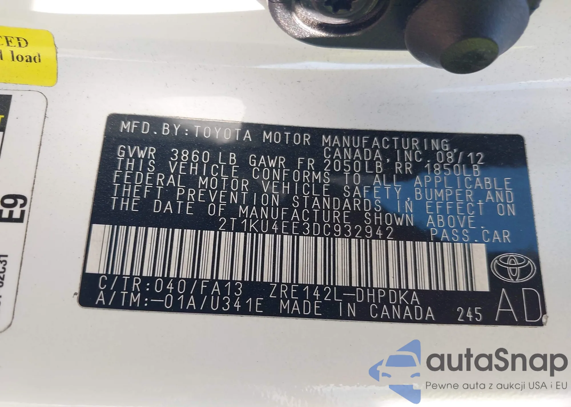 Samochód Toyota Matrix 2013 (VIN 2T1KU4EE3DC932942) nie był wcześniej licytowany. Dokumenty są czyste, przebieg odpowiada lub jest niższy niż średnia rynku. Sprzedaje go firma ubezpieczeniowa – polecamy zakup. Dostawa do portu zajmie ok. 6–8 tygodni.