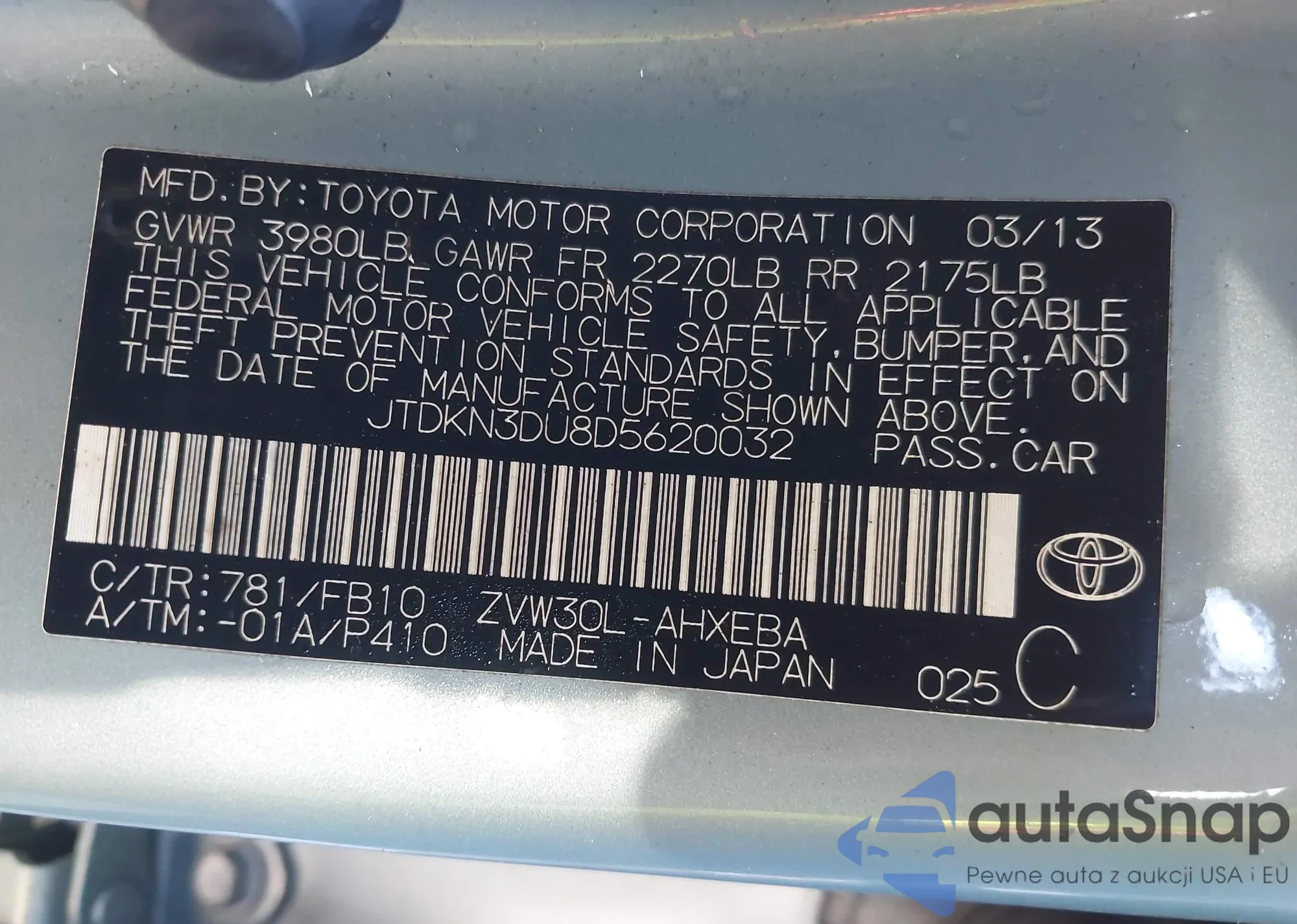 VIN: JTDKN3DU8D5620032