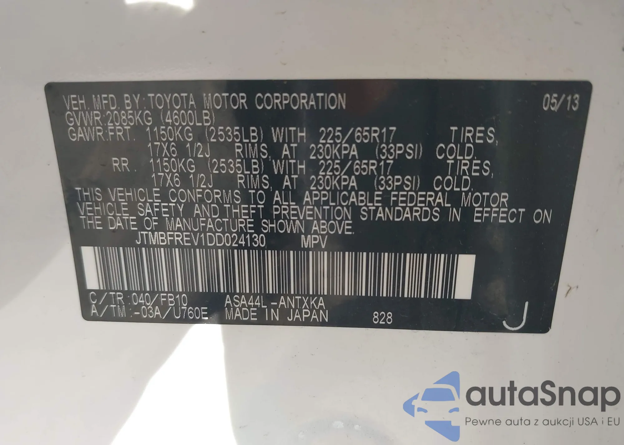 VIN: JTMBFREV1DD024130