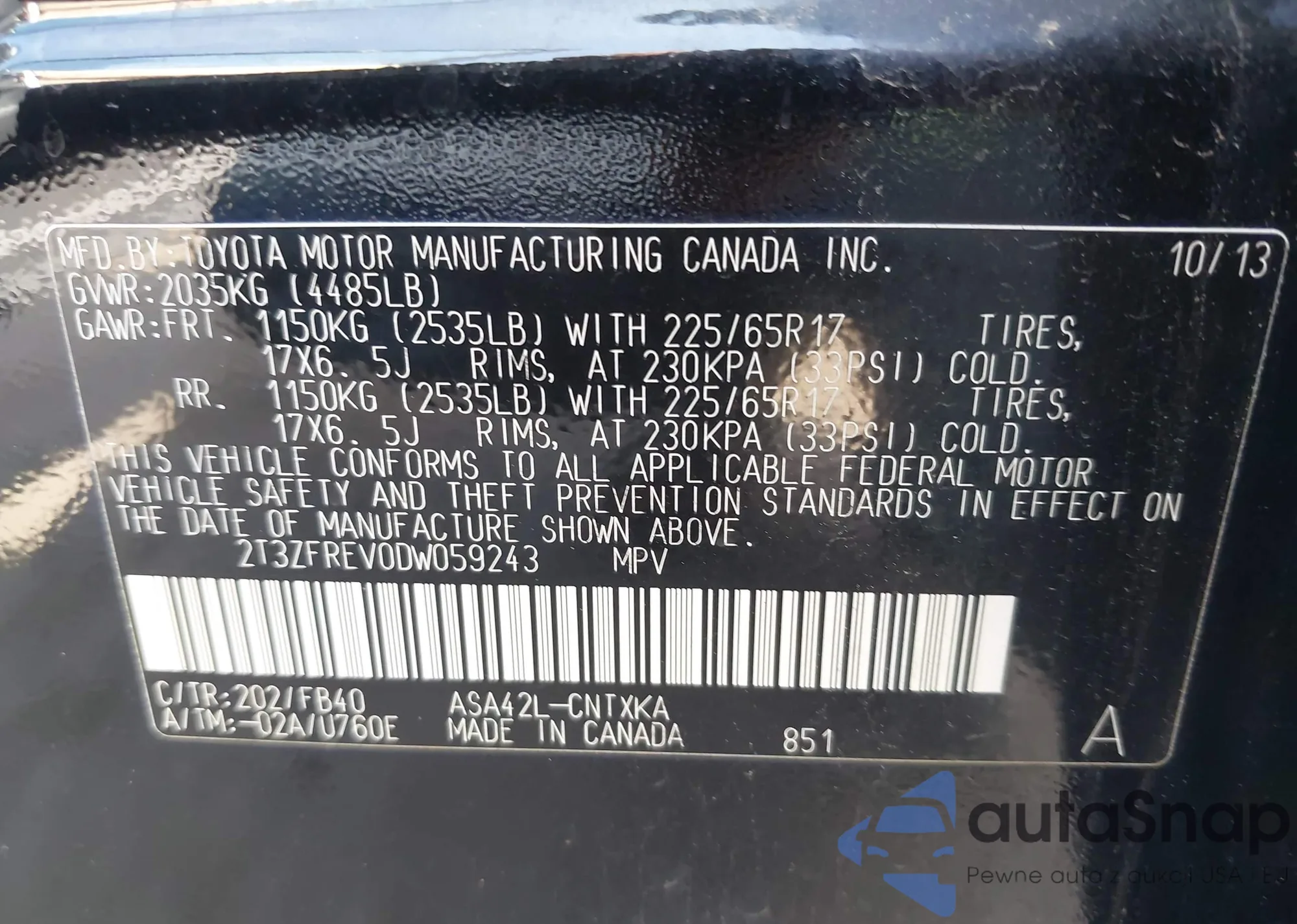 VIN: 2T3ZFREV0DW059243