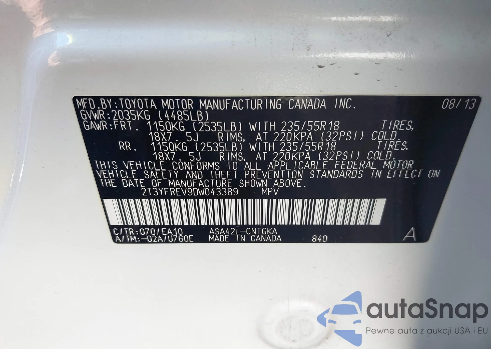 VIN: 2T3YFREV9DW043389