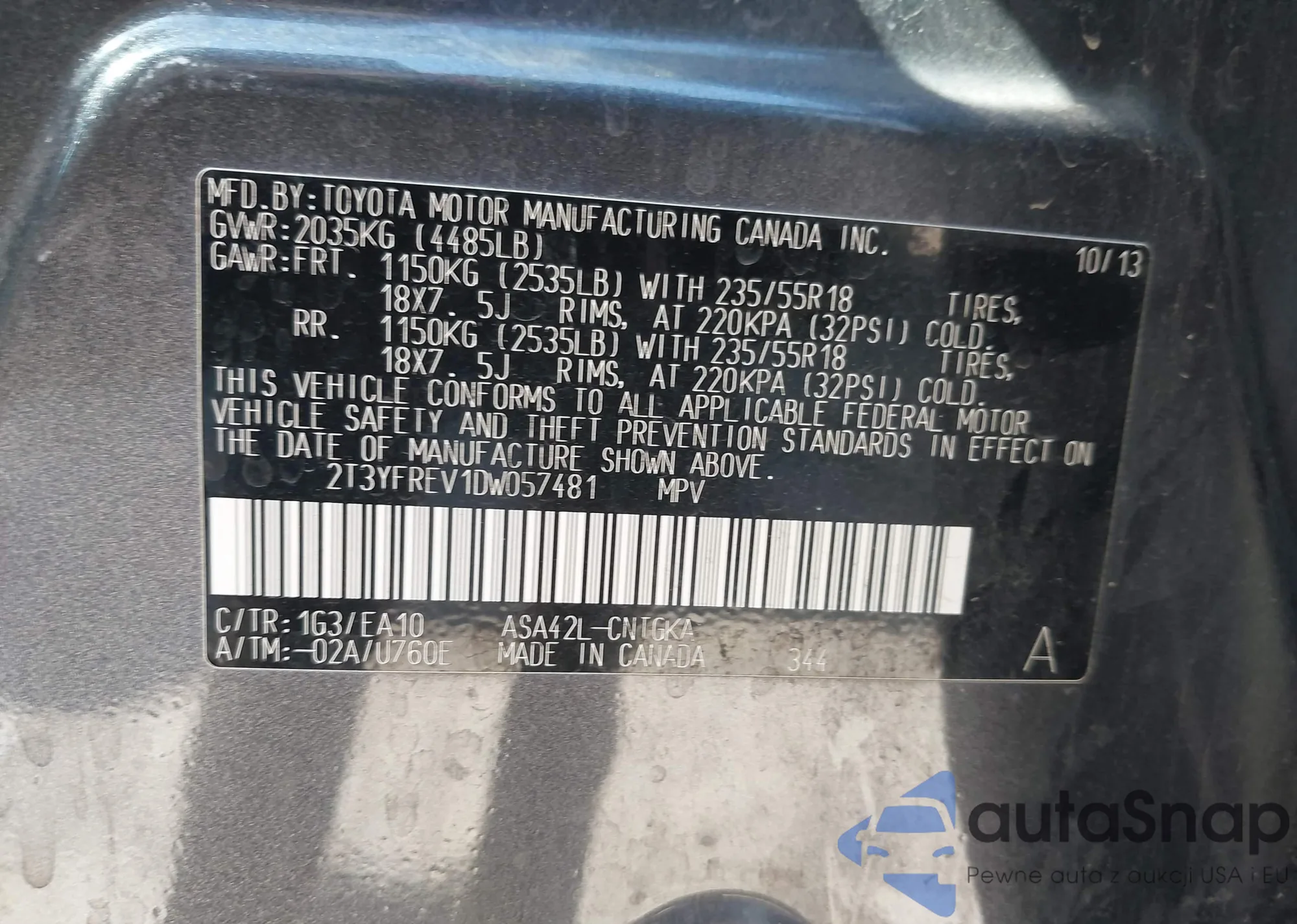 VIN: 2T3YFREV1DW057481