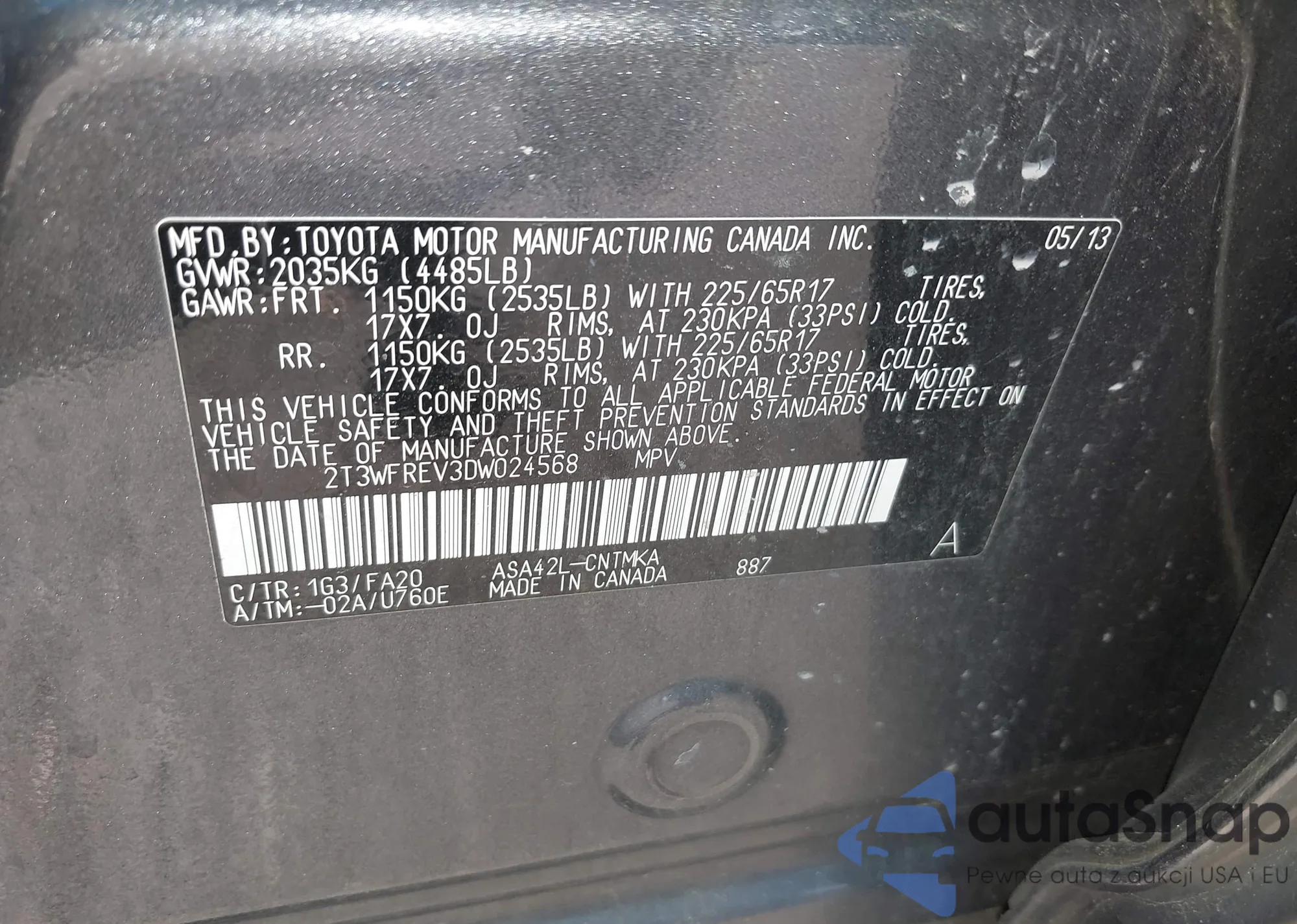 • VIN: 2T3WFREV3DW024568