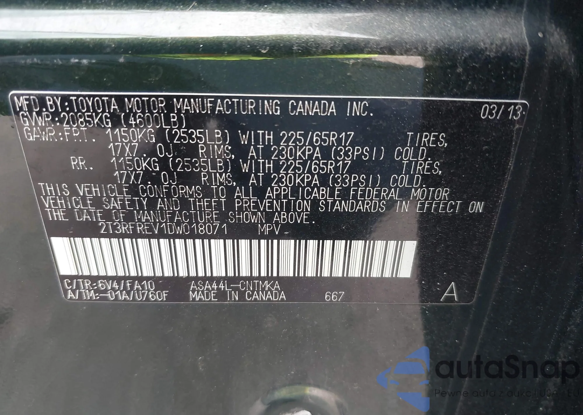 VIN: 2T3RFREV1DW018071