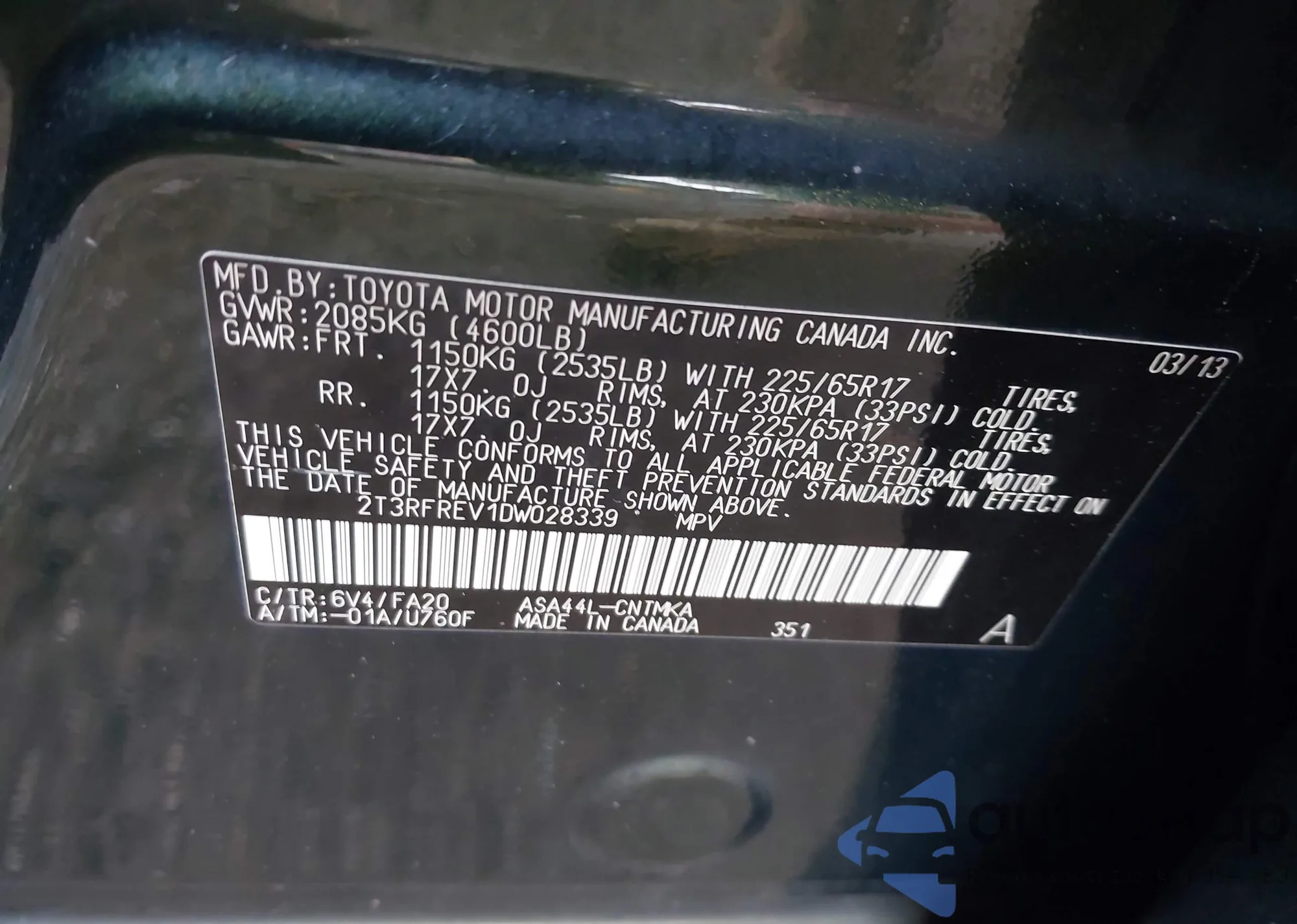 VIN: 2T3RFREV1DW028339