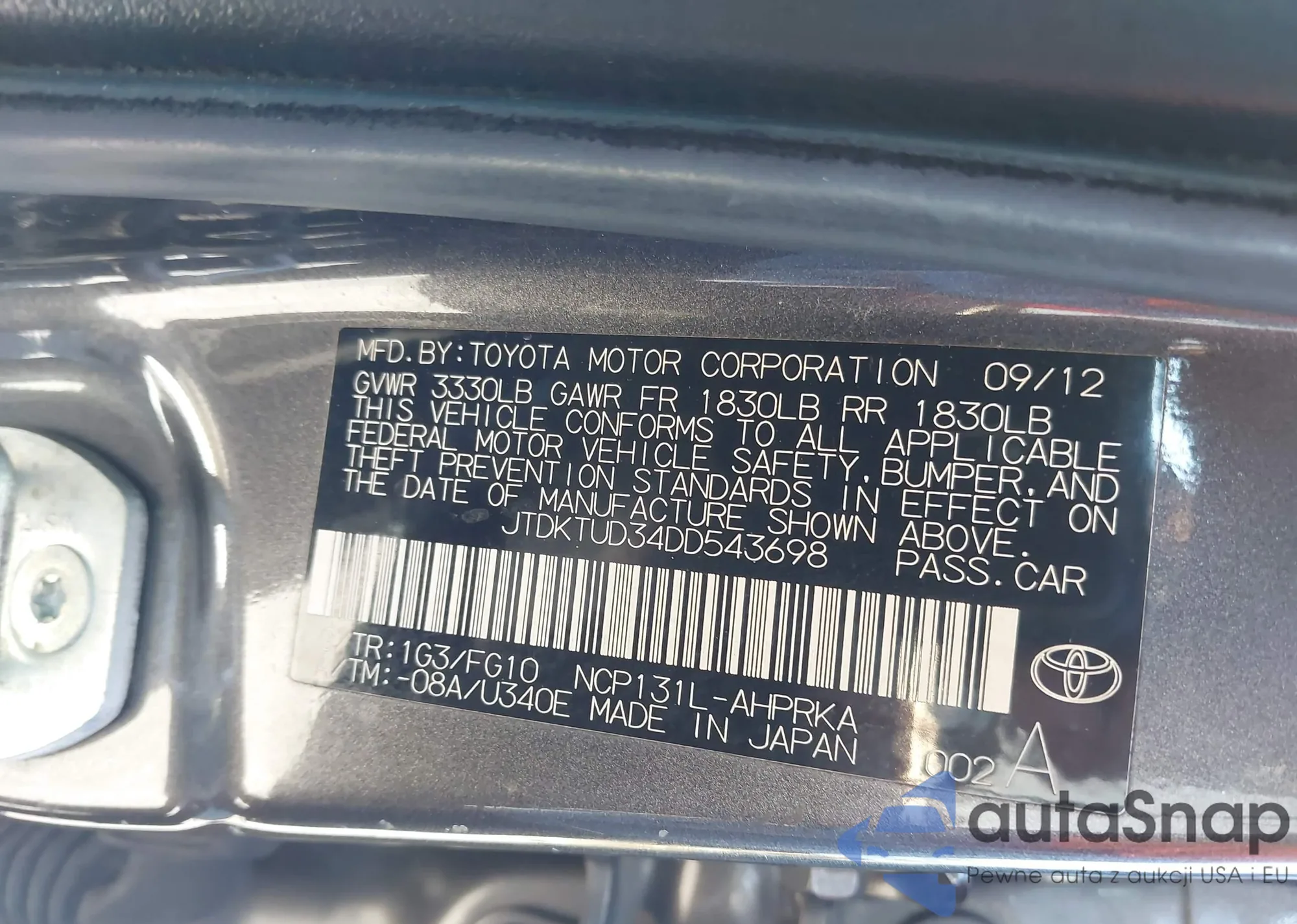 VIN: JTDKTUD34DD543698