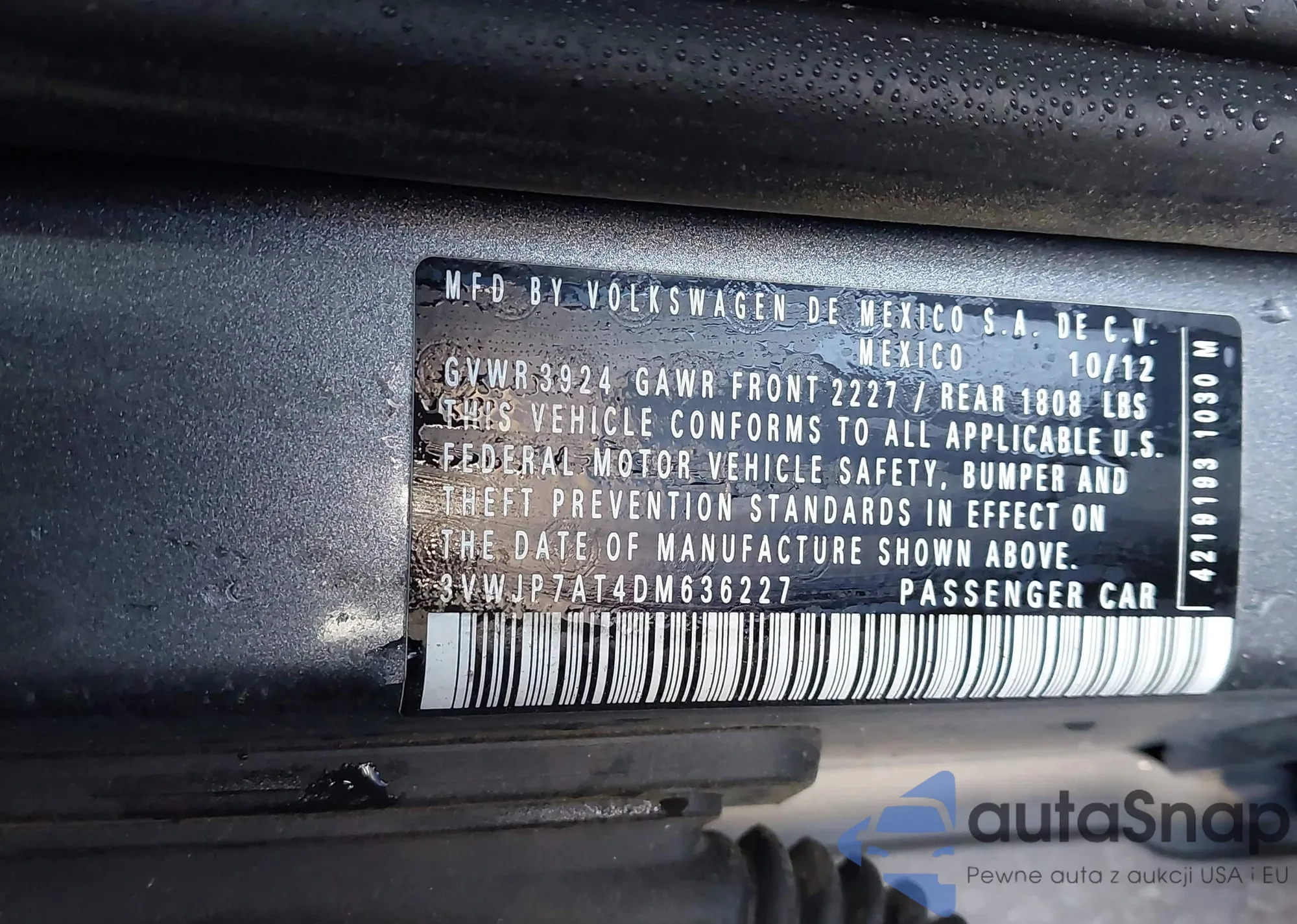 • VIN: 3VWJP7AT4DM636227