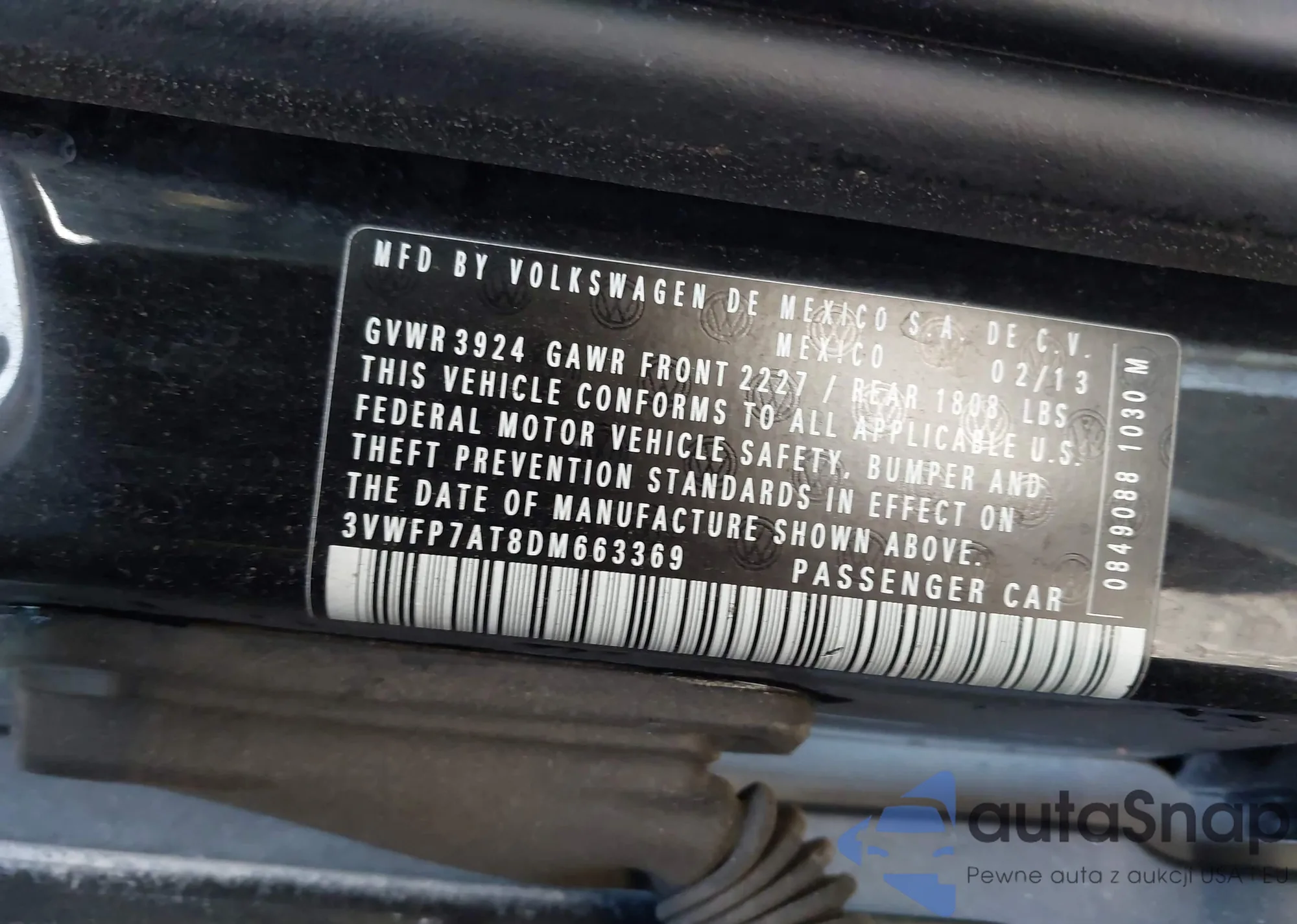 • VIN: 3VWFP7AT8DM663369