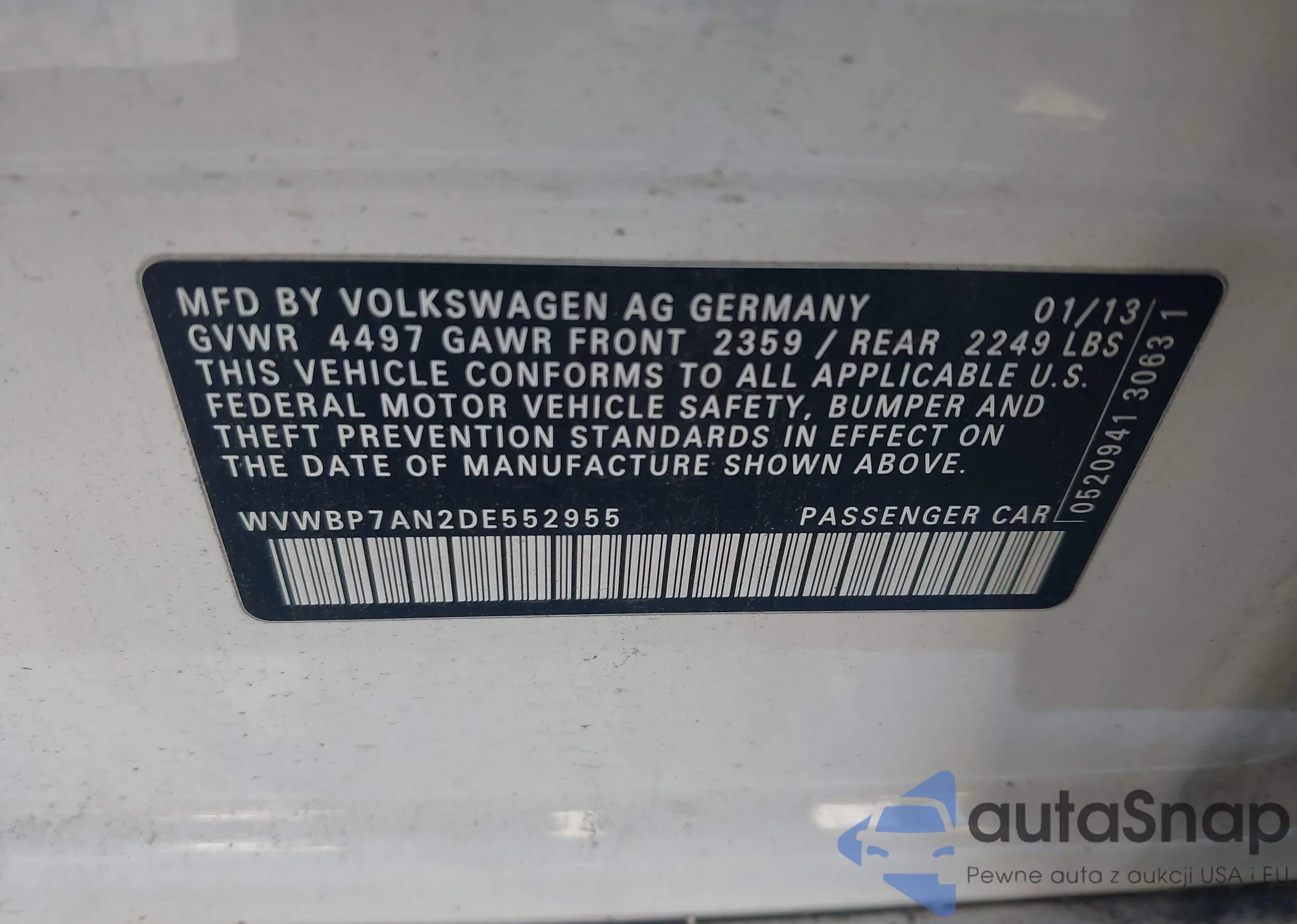 VIN: WVWBP7AN2DE552955