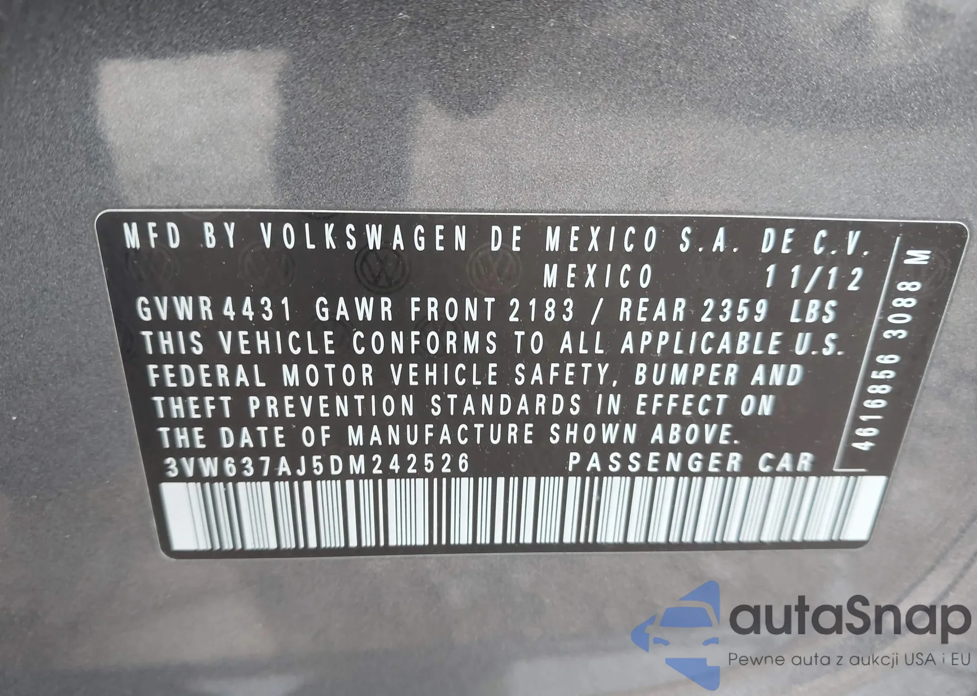 VIN: 3VW637AJ5DM242526