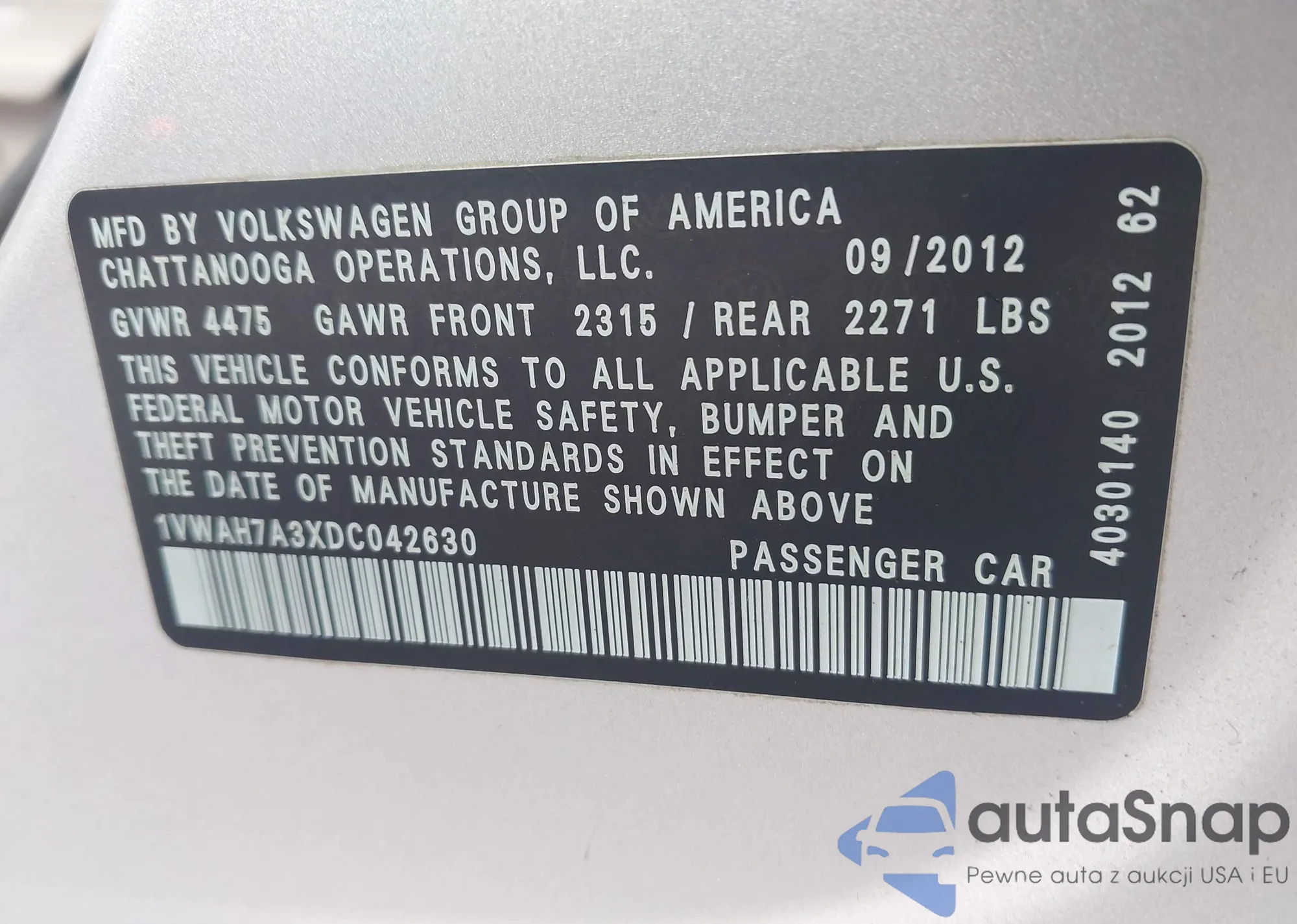 VIN: 1VWAH7A3XDC042630