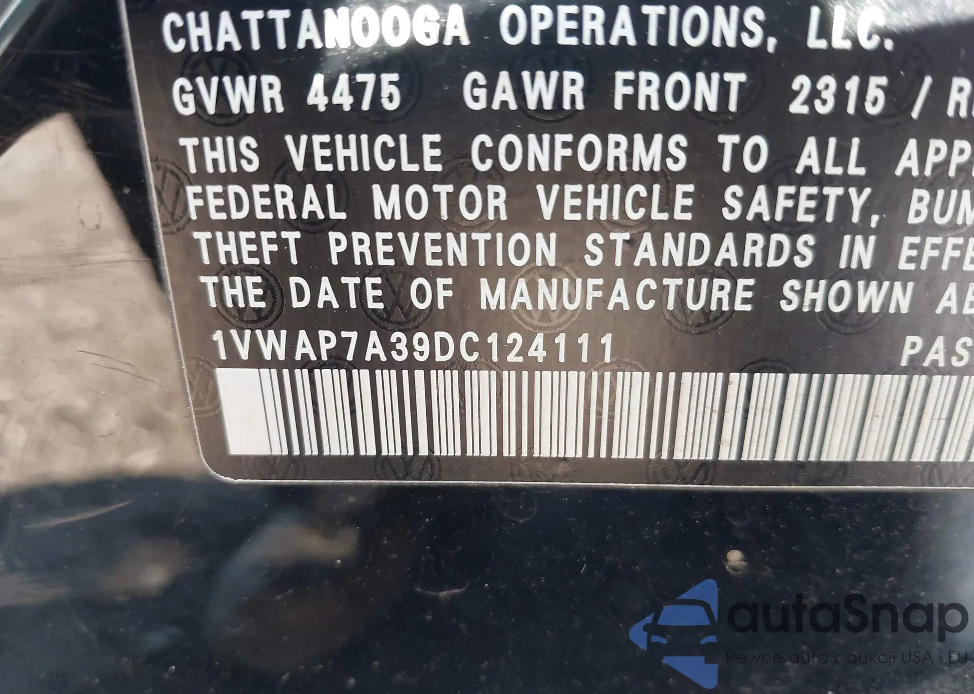 Samochód Volkswagen Passat 2013 (VIN 1VWAP7A39DC124111) nie był wcześniej licytowany. Dokumenty są czyste, przebieg odpowiada lub jest niższy niż średnia rynku. Sprzedaje go firma ubezpieczeniowa – polecamy zakup. Dostawa do portu zajmie ok. 6–8 tygodni.