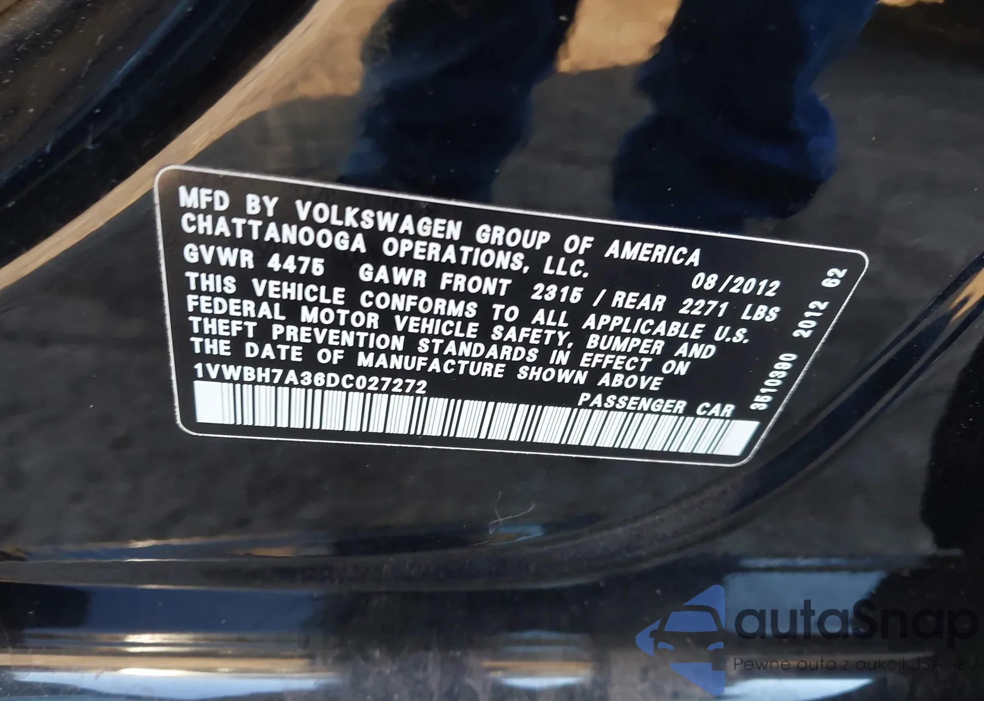 VIN: 1VWBH7A36DC027272