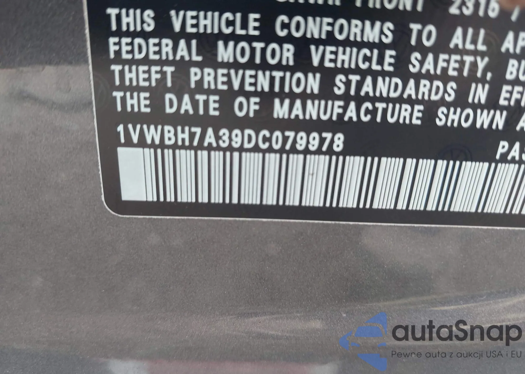 VIN: 1VWBH7A39DC079978
