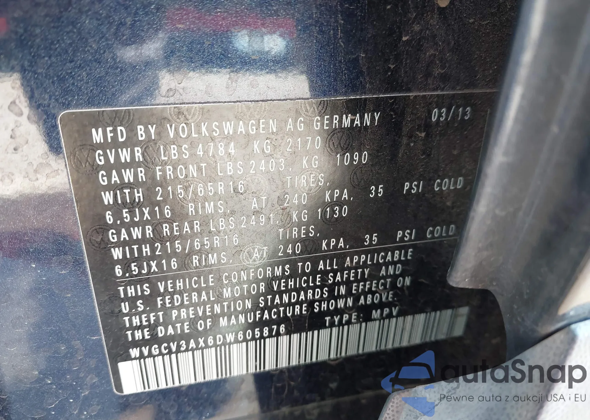 VIN: WVGCV3AX6DW605876