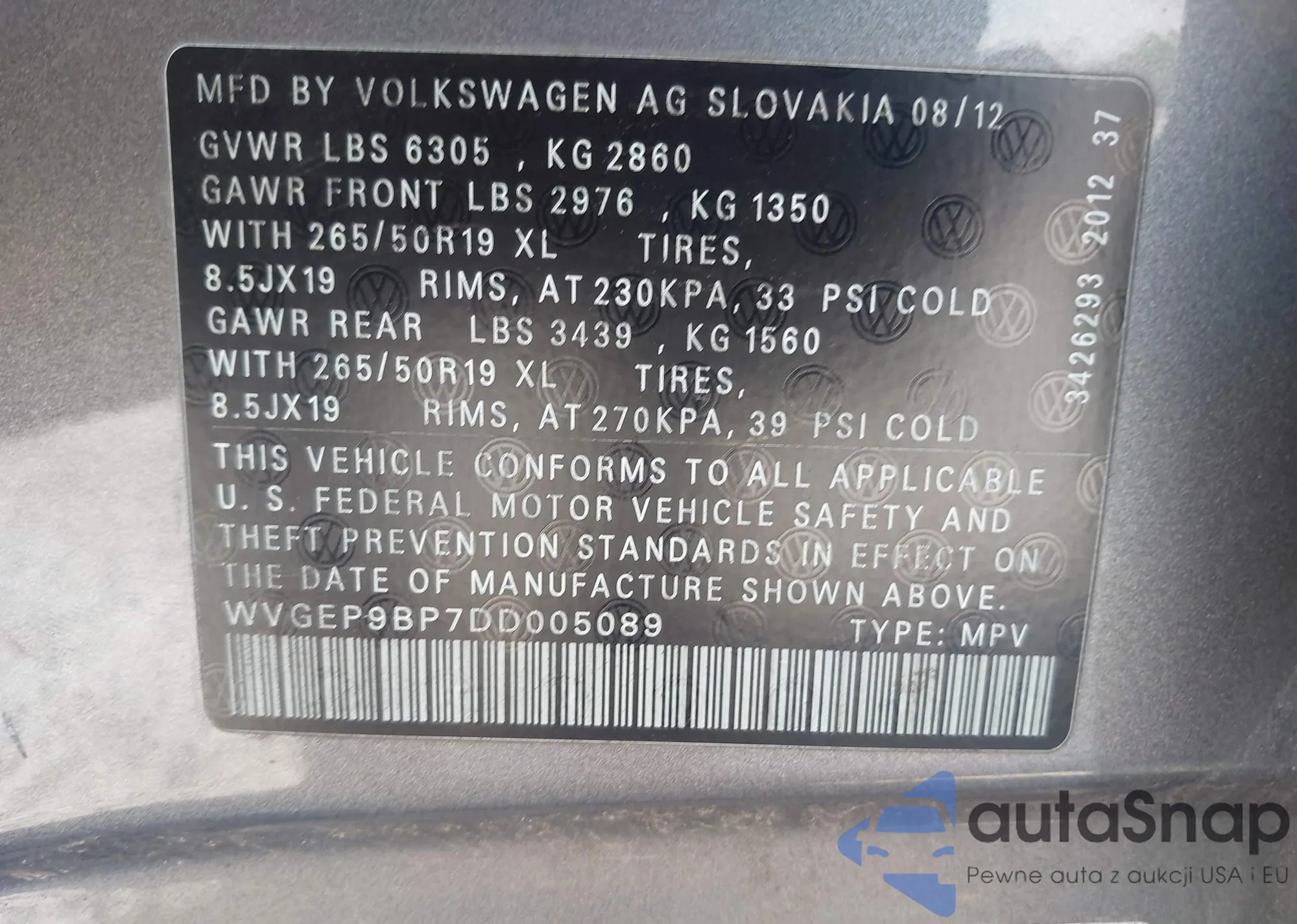 • VIN: WVGEP9BP7DD005089