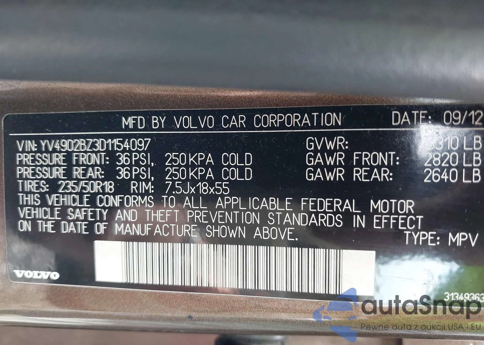 VIN: YV4902BZ3D1154097