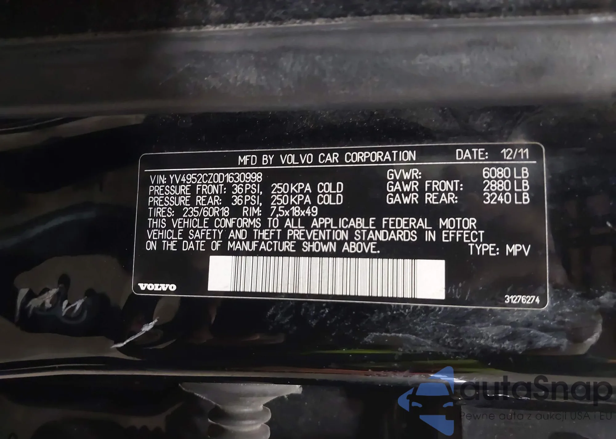 Samochód Volvo XC90 2013 (VIN YV4952CZ0D1630998) ma dokumenty uniemożliwiające rejestrację. Mogą pojawić się trudności przy eksporcie i rejestracji. Skontaktuj się z ekspertami AutaSnap w celu znalezienia alternatywy.