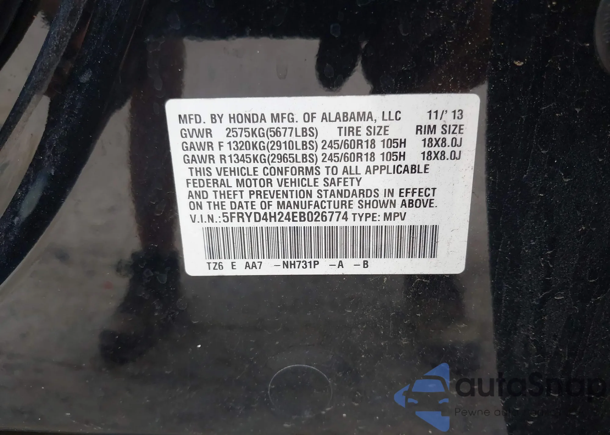 VIN: 5FRYD4H24EB026774