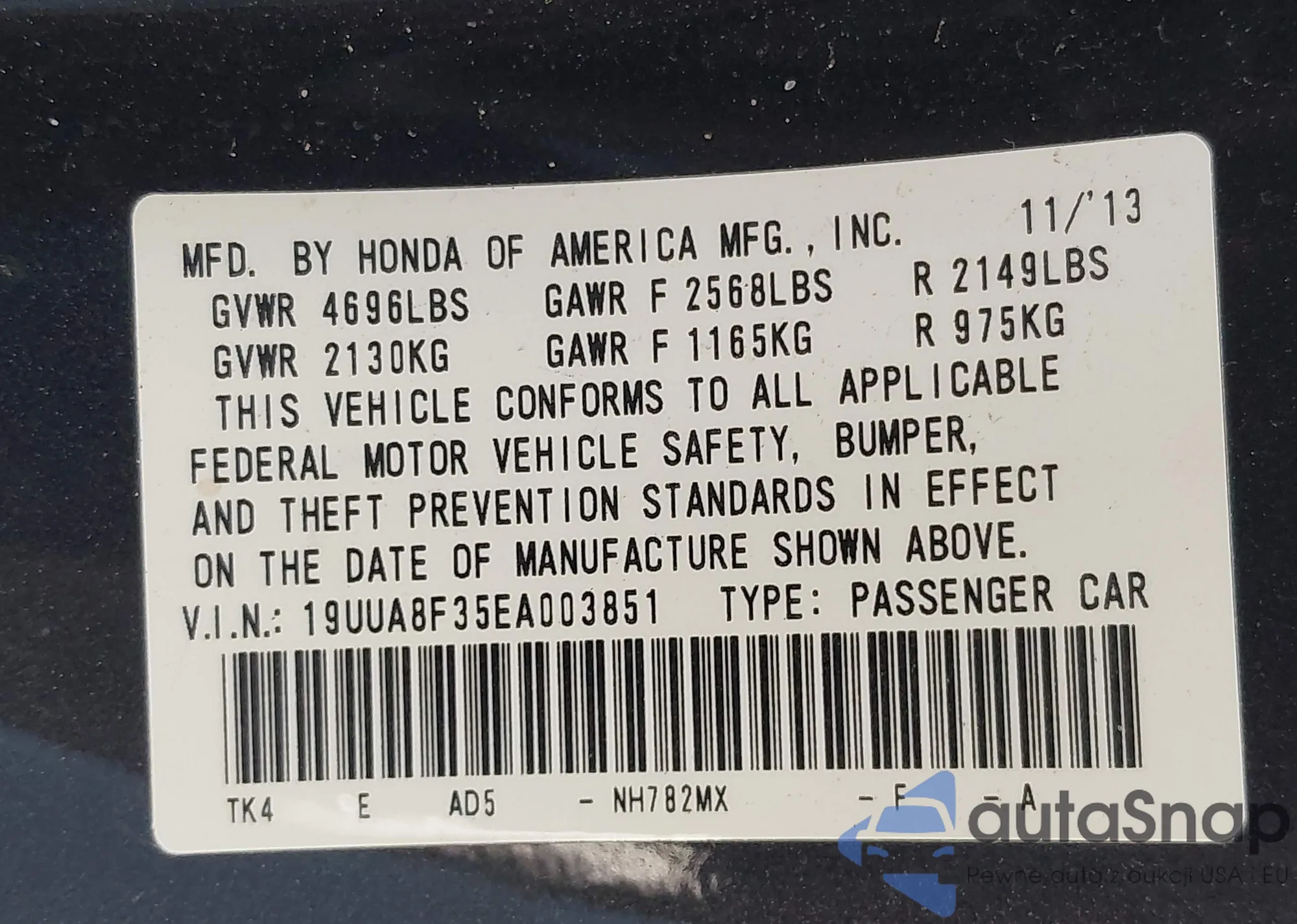 VIN: 19UUA8F35EA003851