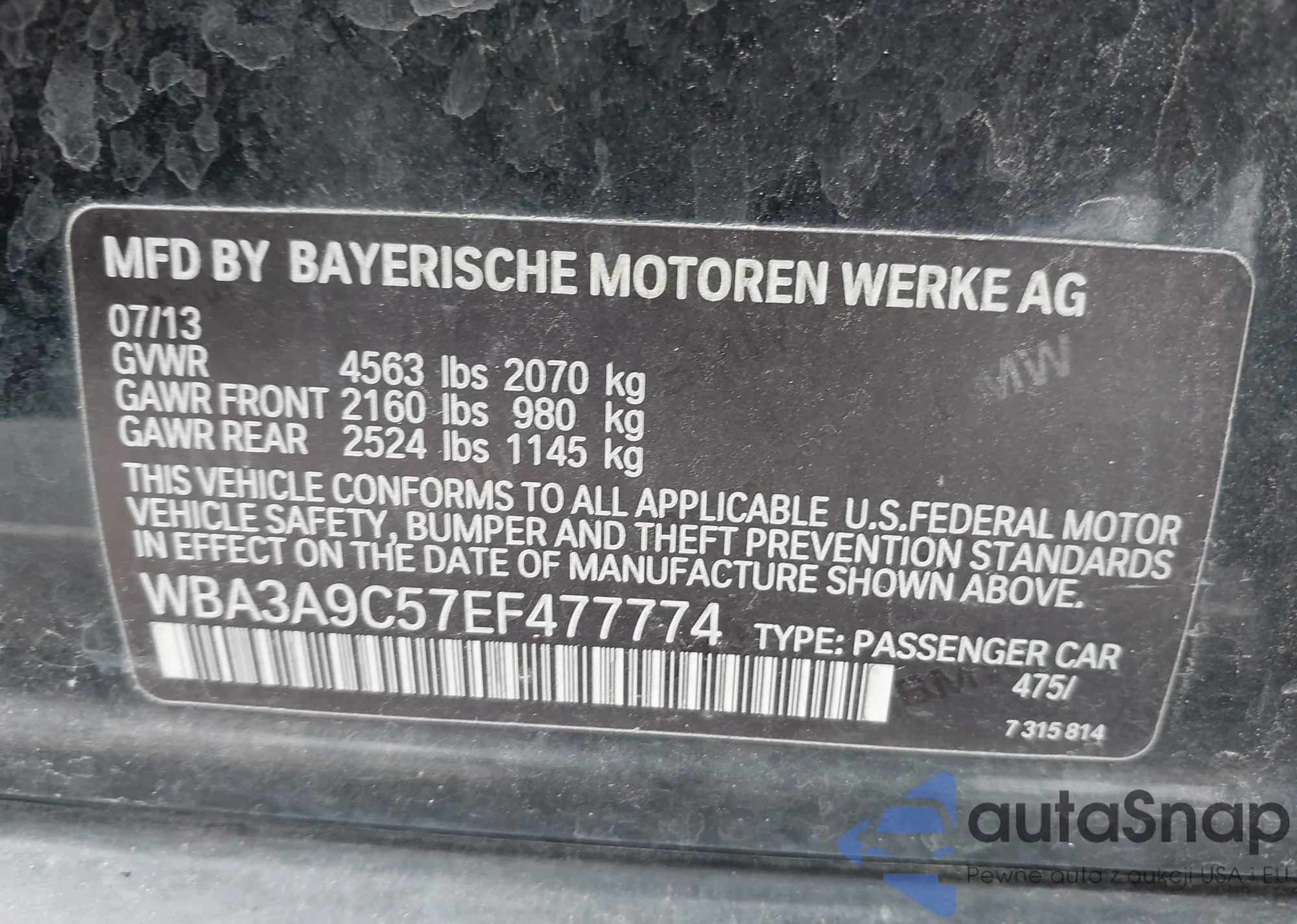 • VIN: WBA3A9C57EF477774