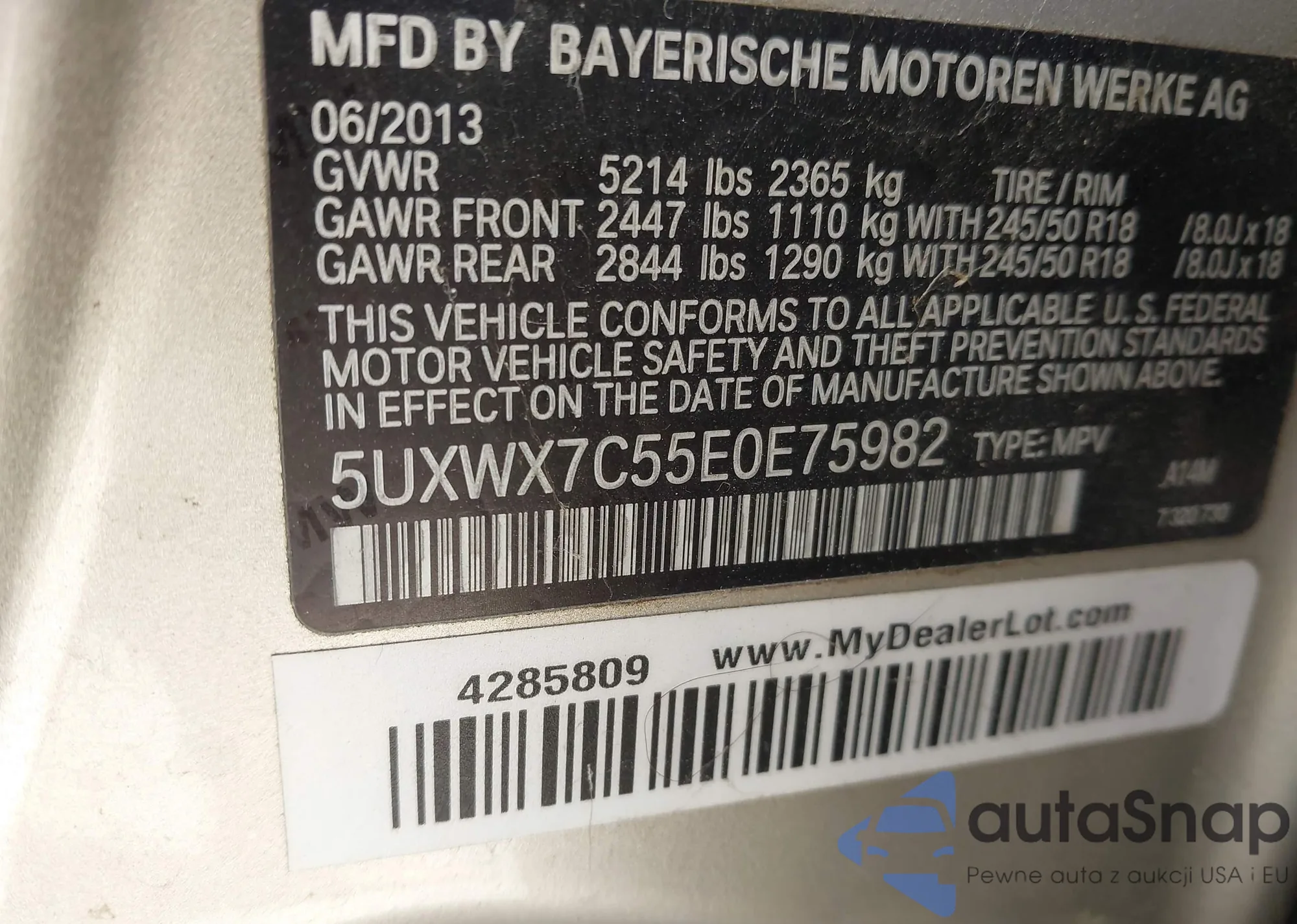 VIN: 5UXWX7C55E0E75982