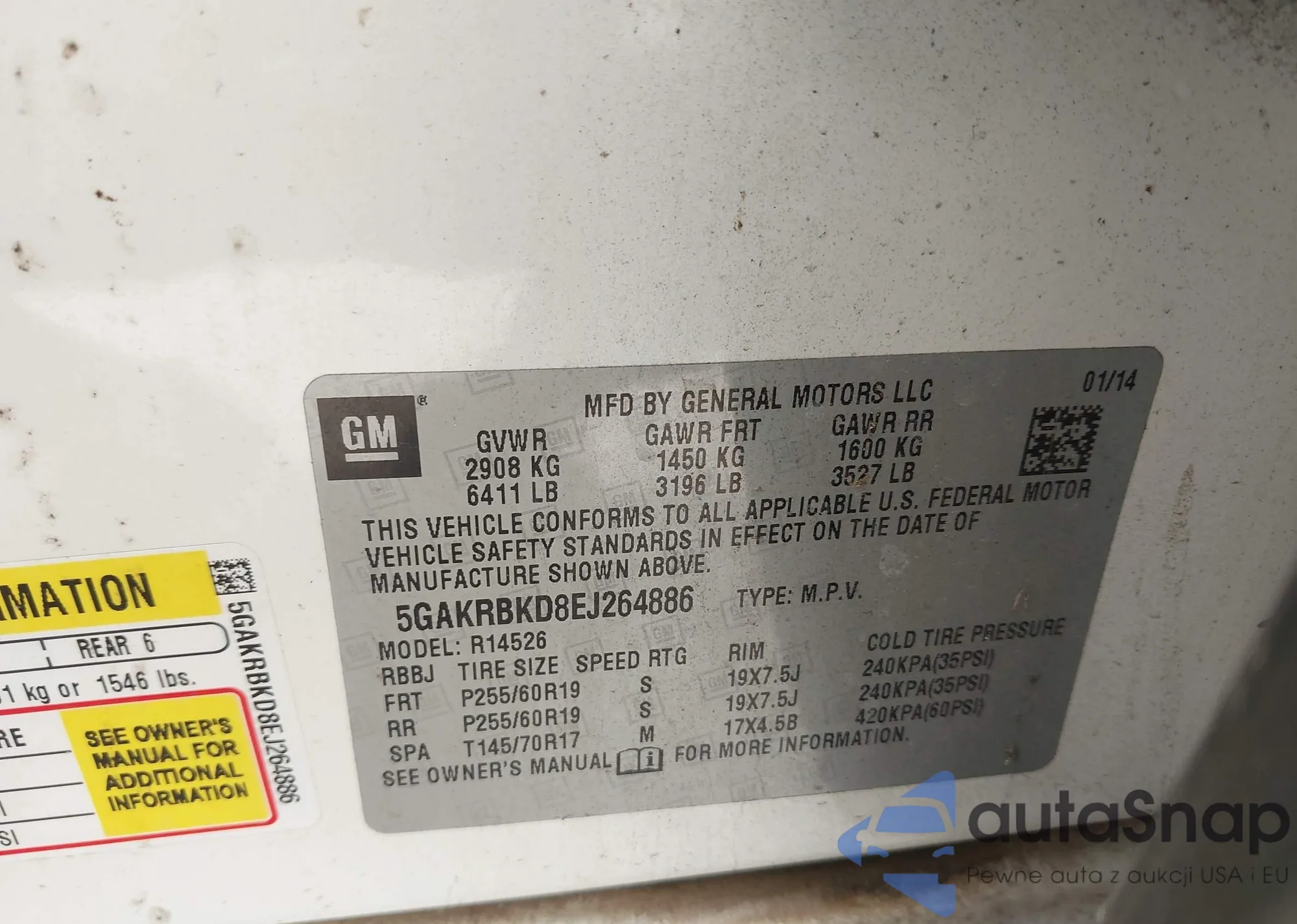 Samochód Buick Enclave 2014 (VIN 5GAKRBKD8EJ264886) nie był wcześniej licytowany. Dokumenty są czyste, przebieg odpowiada lub jest niższy niż średnia rynku. Sprzedaje go firma ubezpieczeniowa – polecamy zakup. Dostawa do portu zajmie ok. 6–8 tygodni.