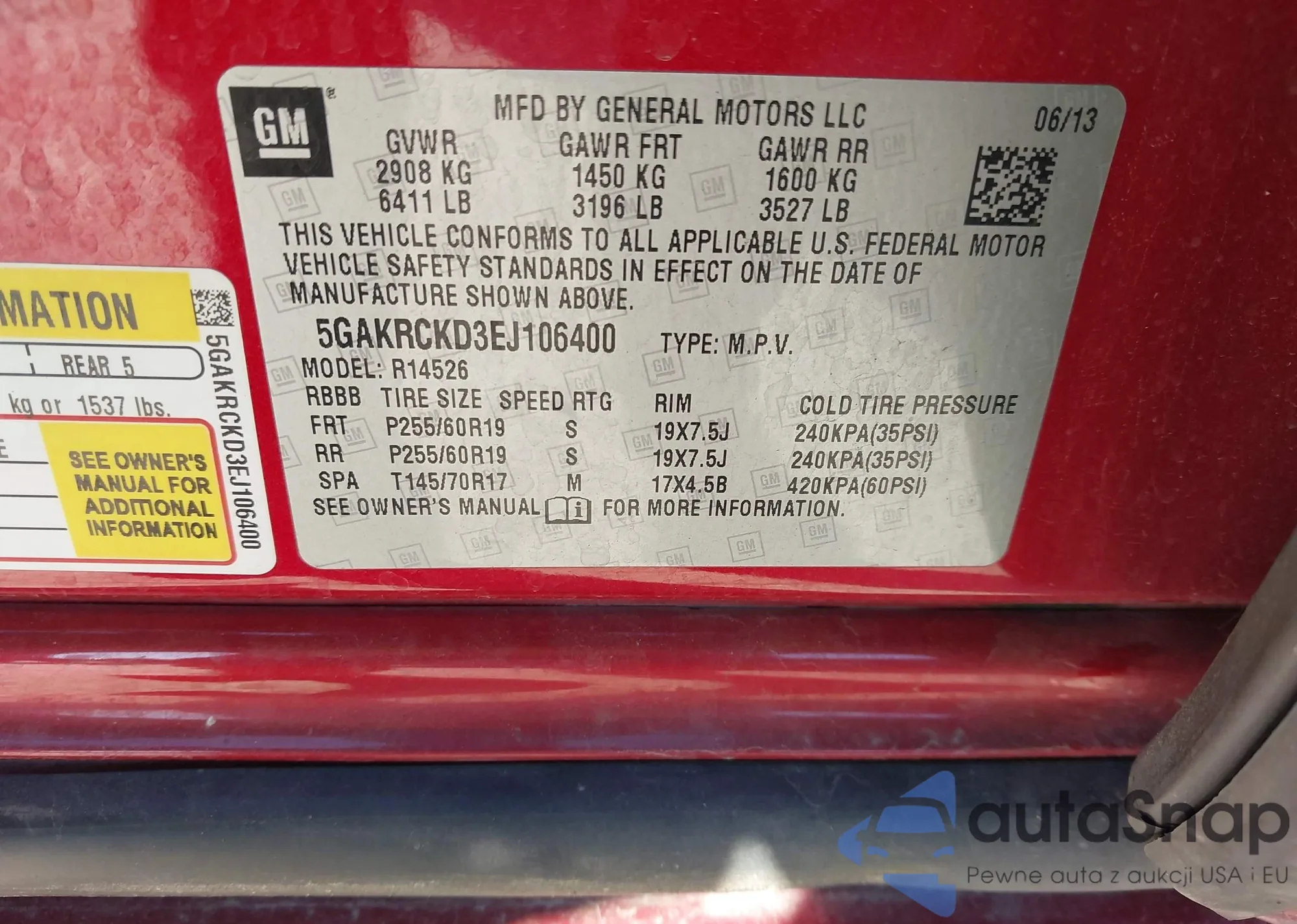 Samochód Buick Enclave 2014 (VIN 5GAKRCKD3EJ106400) nie był wcześniej licytowany. Dokumenty są czyste, przebieg odpowiada lub jest niższy niż średnia rynku. Sprzedaje go firma ubezpieczeniowa – polecamy zakup. Dostawa do portu zajmie ok. 6–8 tygodni.