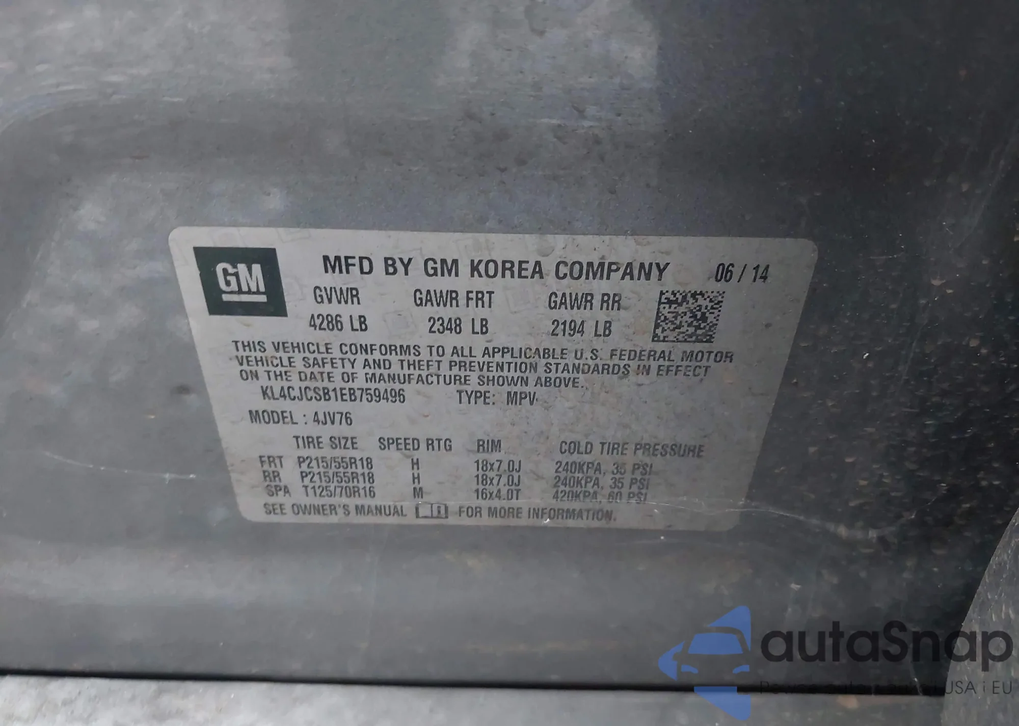 VIN: KL4CJCSB1EB759496