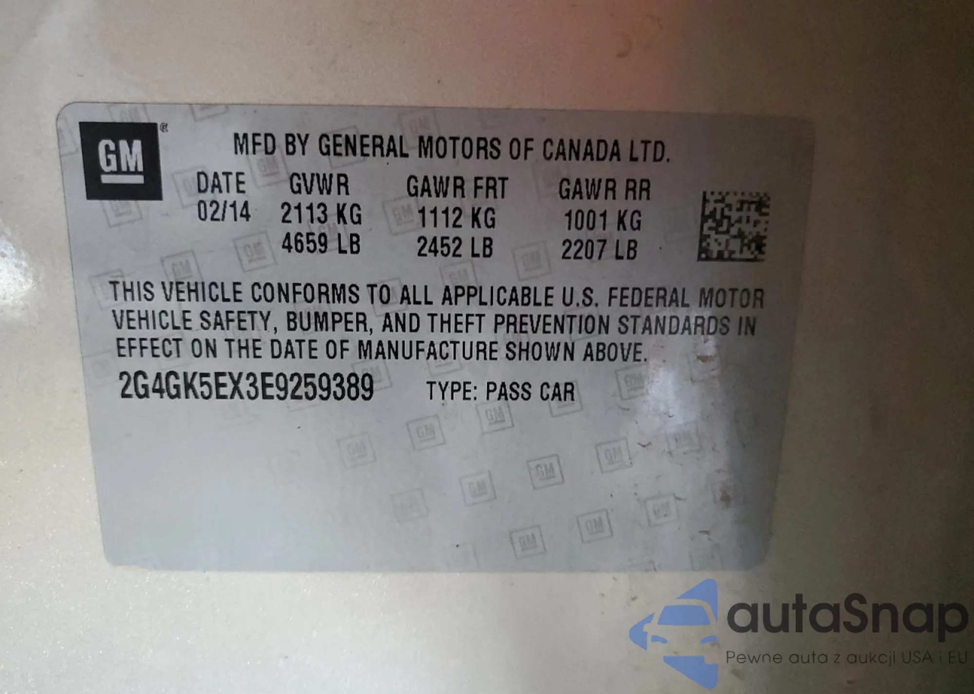 • VIN: 2G4GK5EX3E9259389