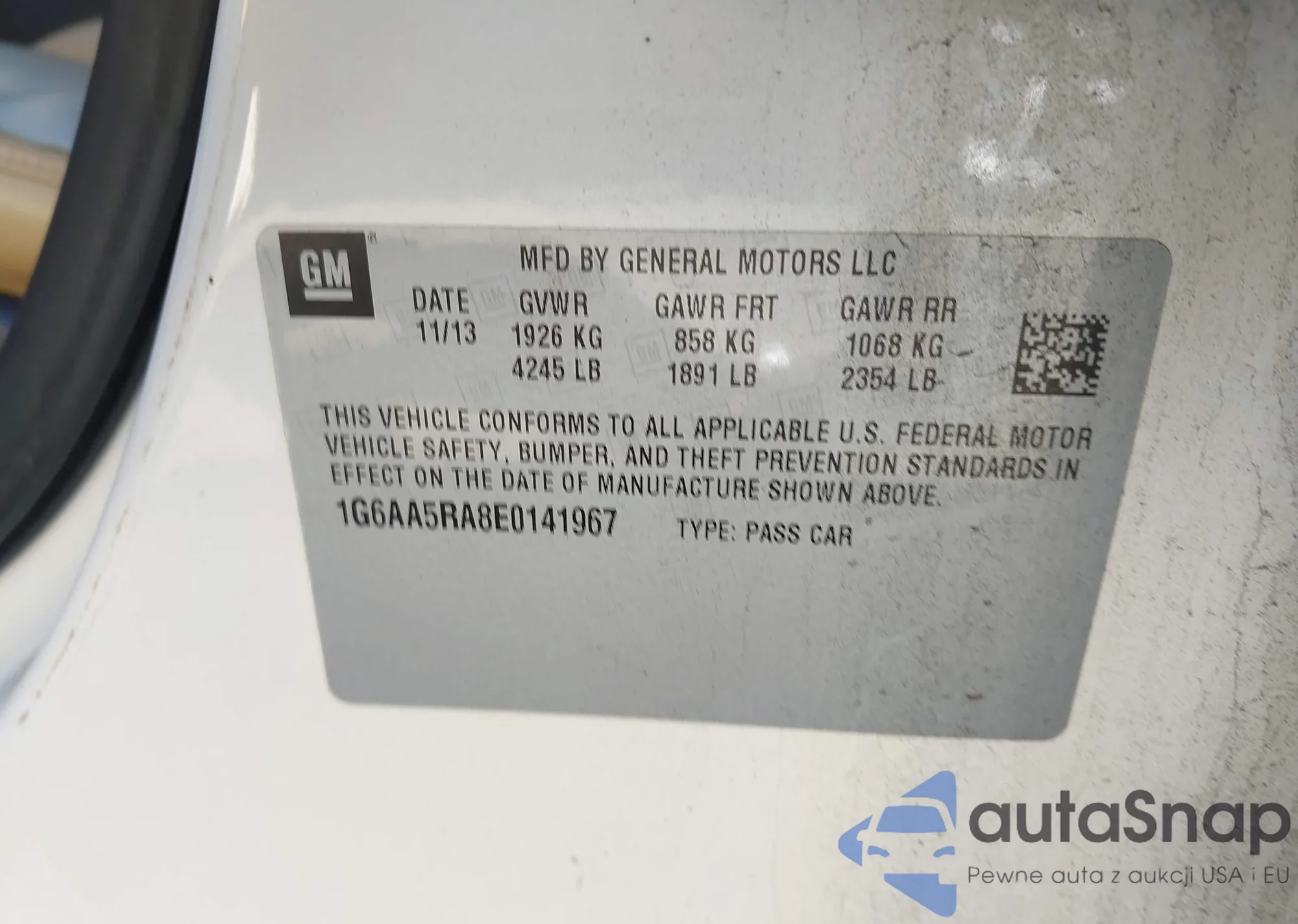 VIN: 1G6AA5RA8E0141967