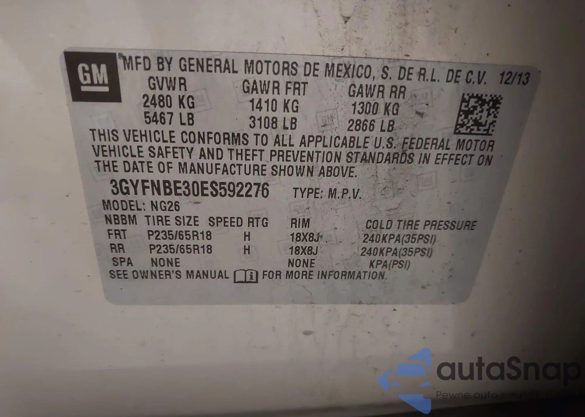 VIN: 3GYFNBE30ES592276
