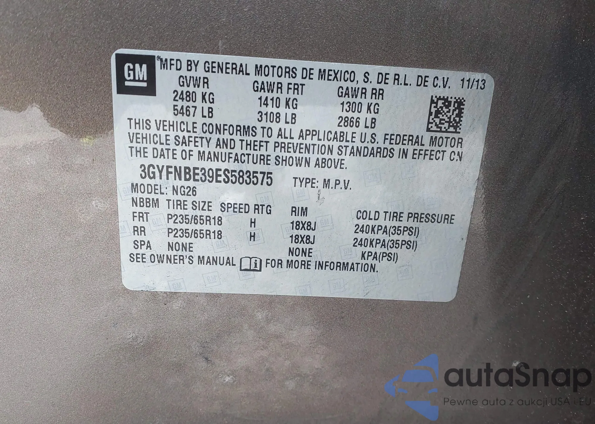 VIN: 3GYFNBE39ES583575