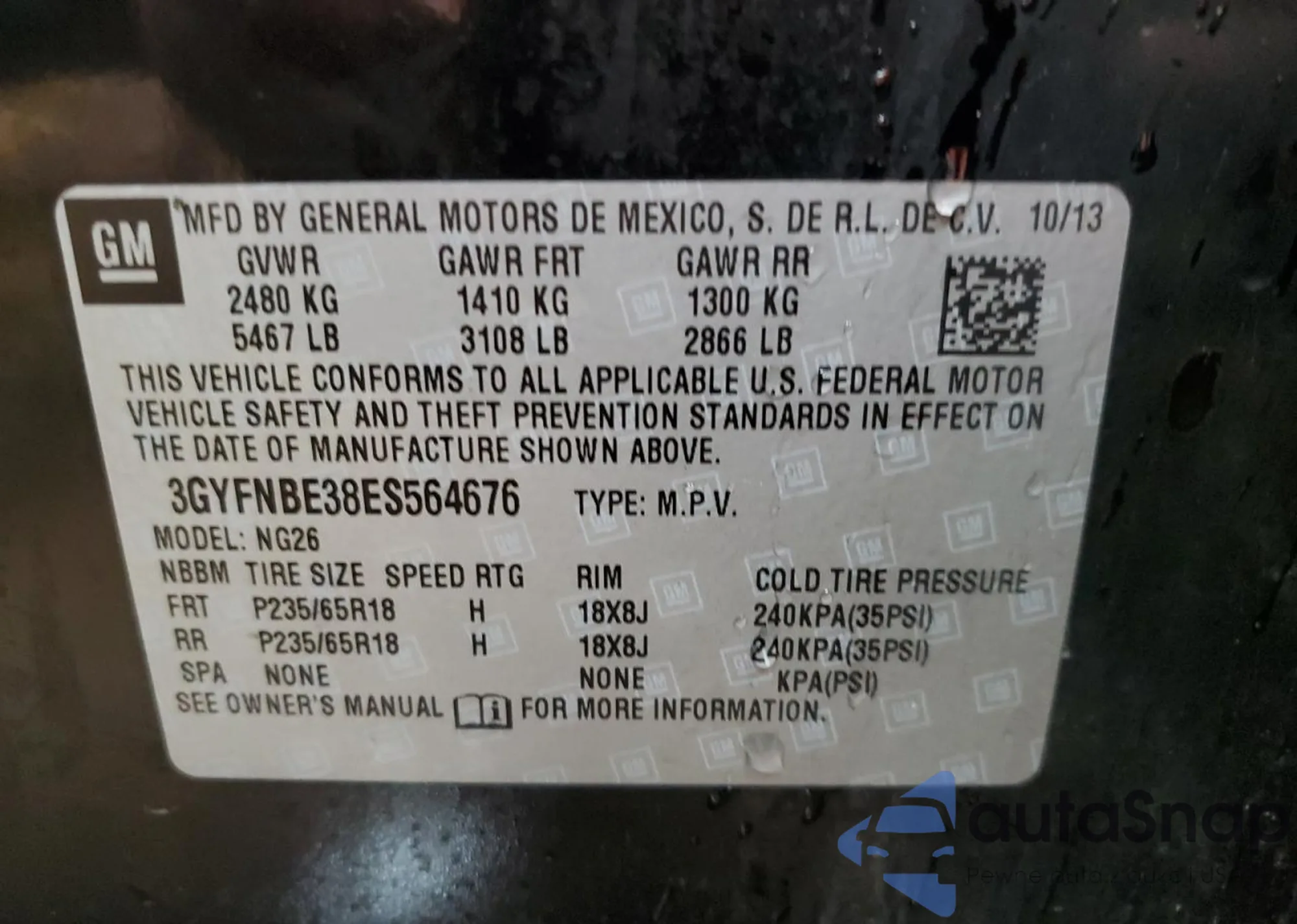 VIN: 3GYFNBE38ES564676