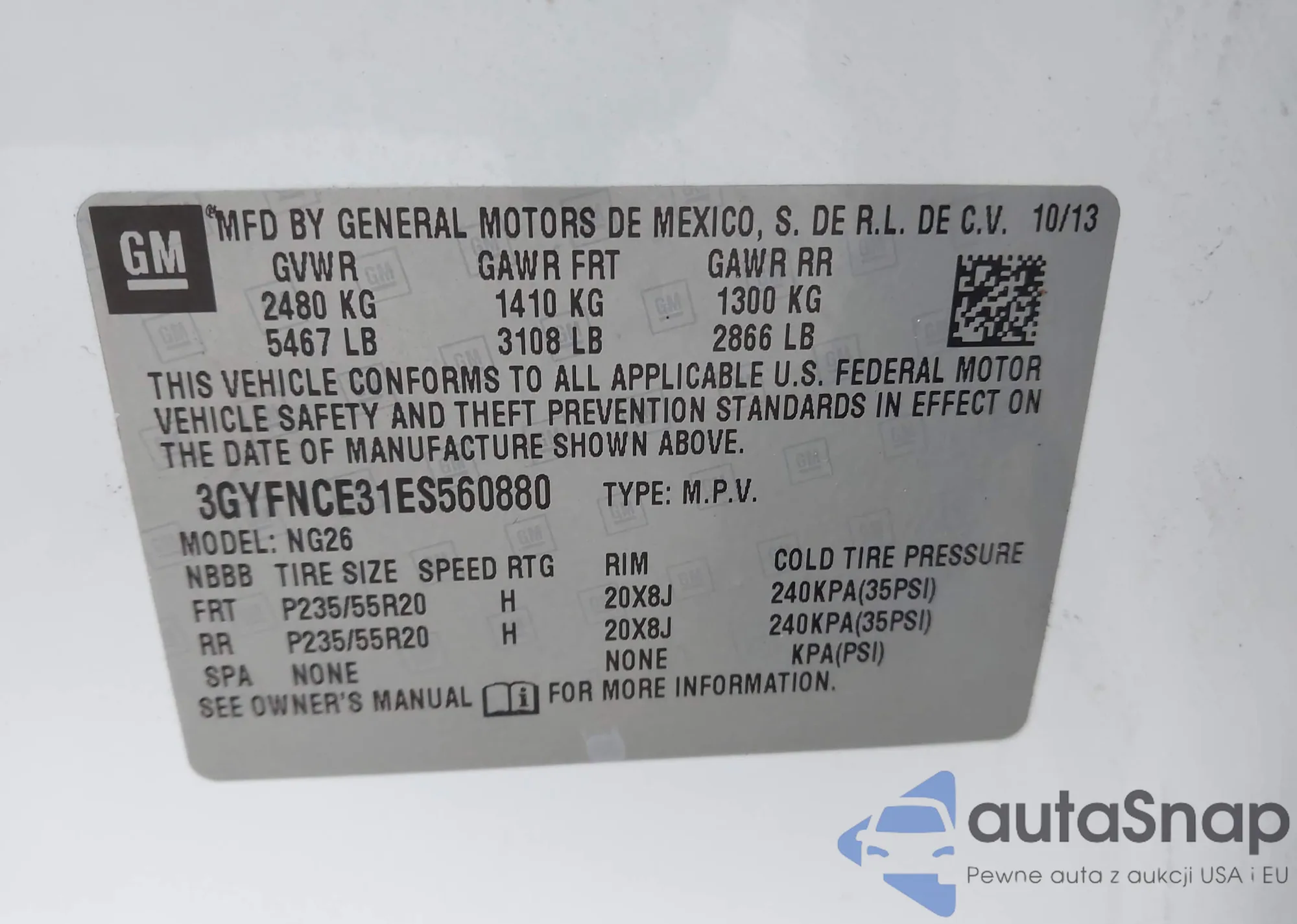 • VIN: 3GYFNCE31ES560880