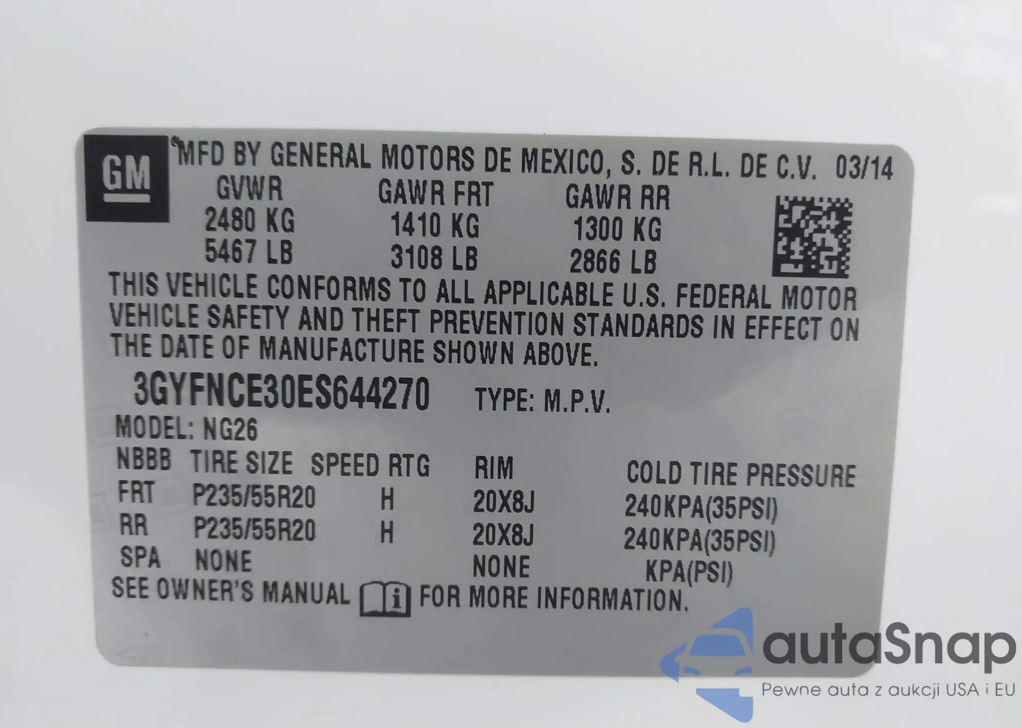 • VIN: 3GYFNCE30ES644270