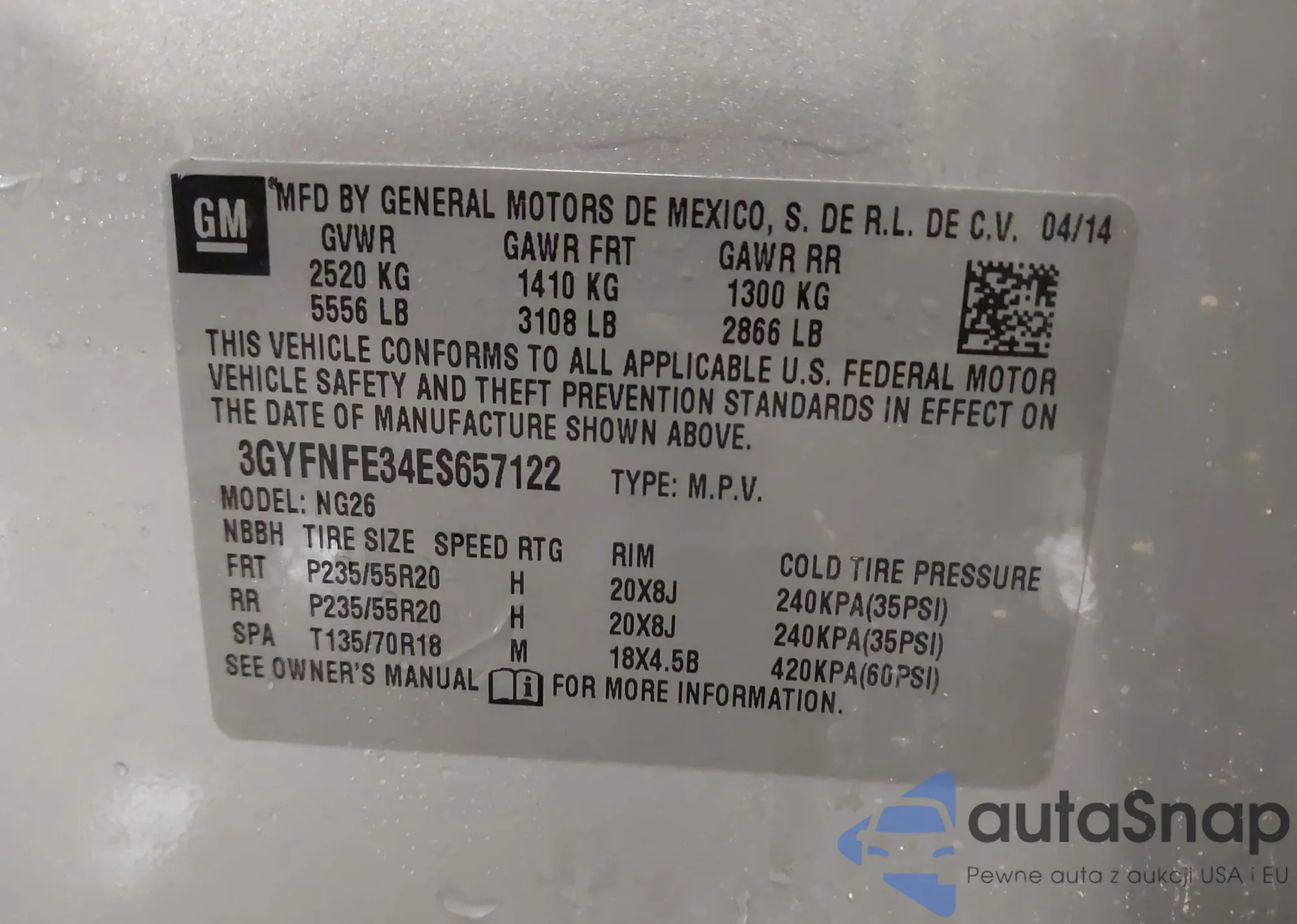 VIN: 3GYFNFE34ES657122