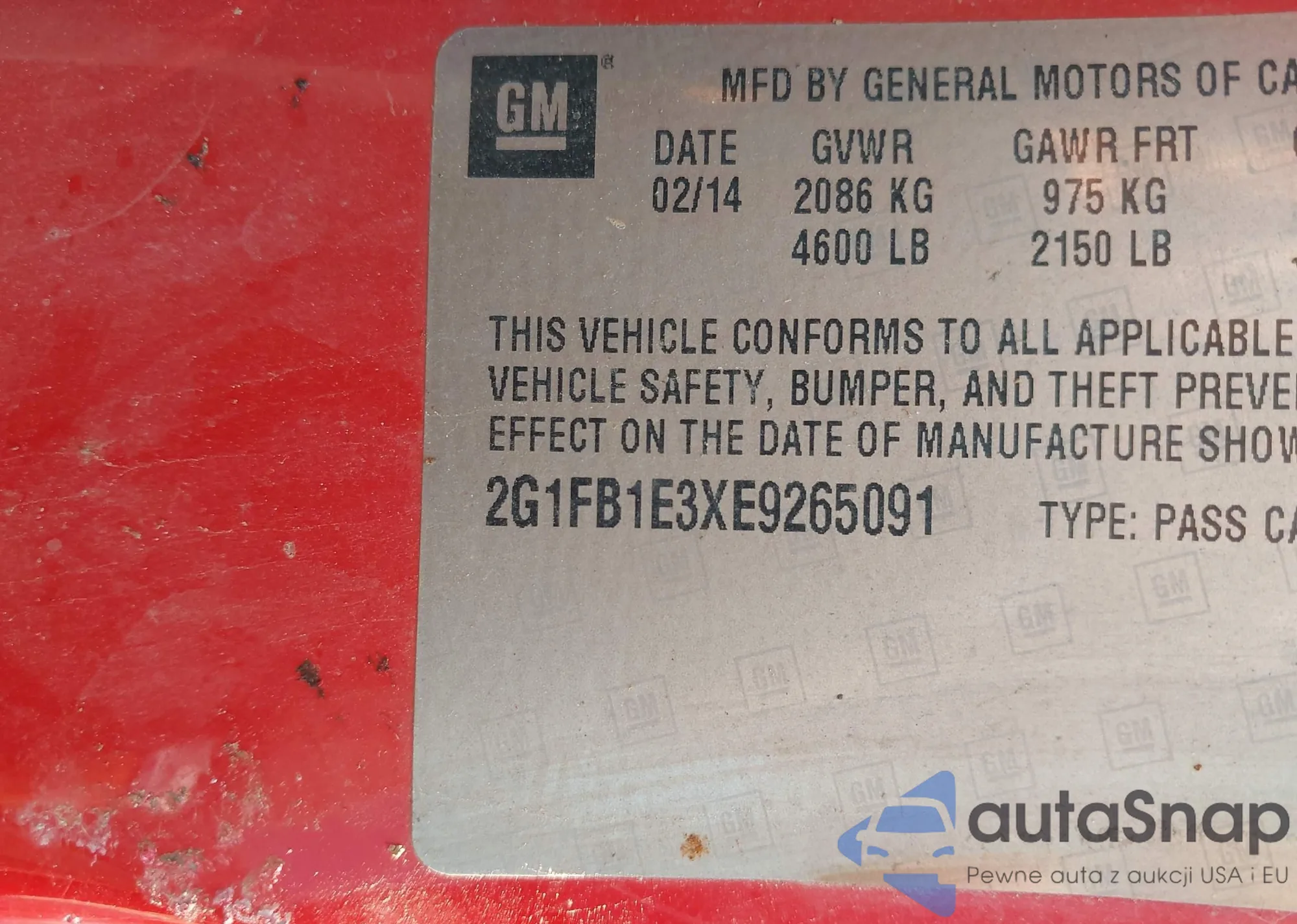 • VIN: 2G1FB1E3XE9265091