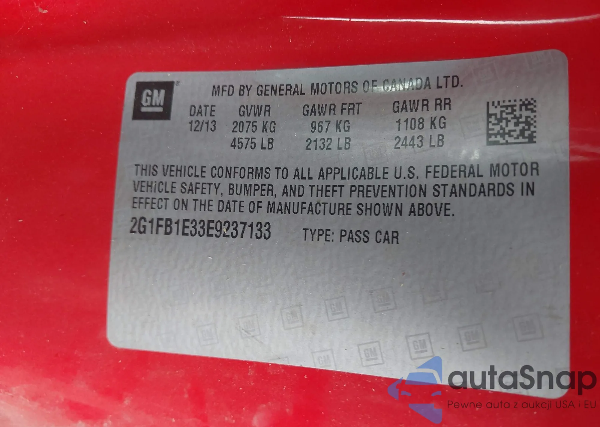 VIN: 2G1FB1E33E9237133