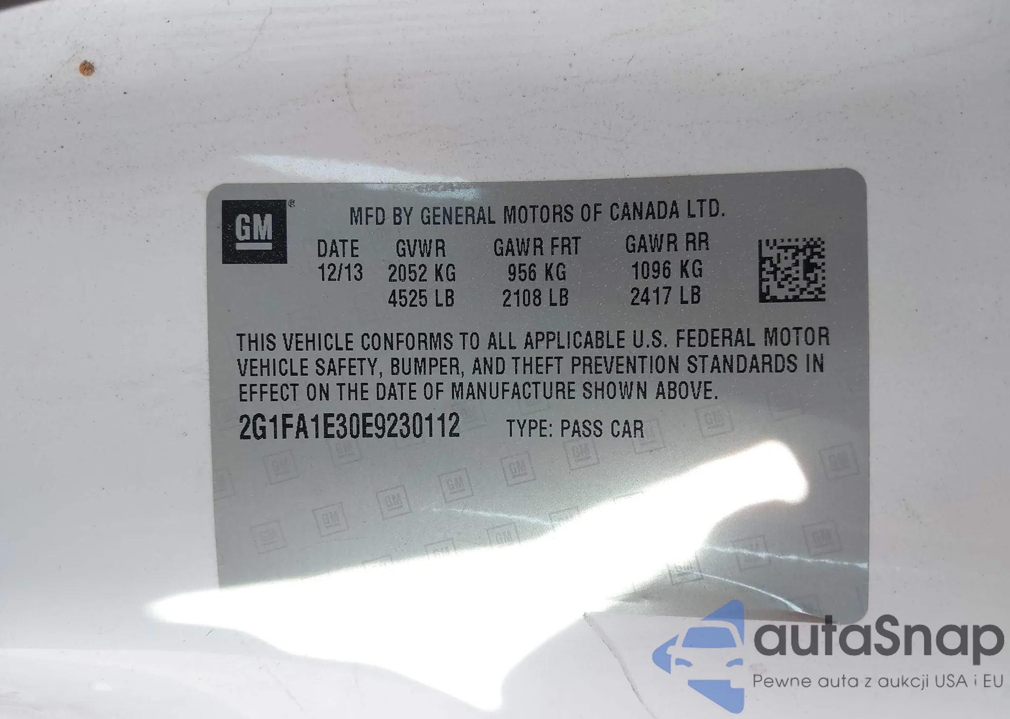 Samochód Chevrolet Camaro 2014 (VIN 2G1FA1E30E9230112) nie był wcześniej licytowany. Dokumenty są czyste, przebieg odpowiada lub jest niższy niż średnia rynku. Sprzedaje go firma ubezpieczeniowa – polecamy zakup. Dostawa do portu zajmie ok. 6–8 tygodni.