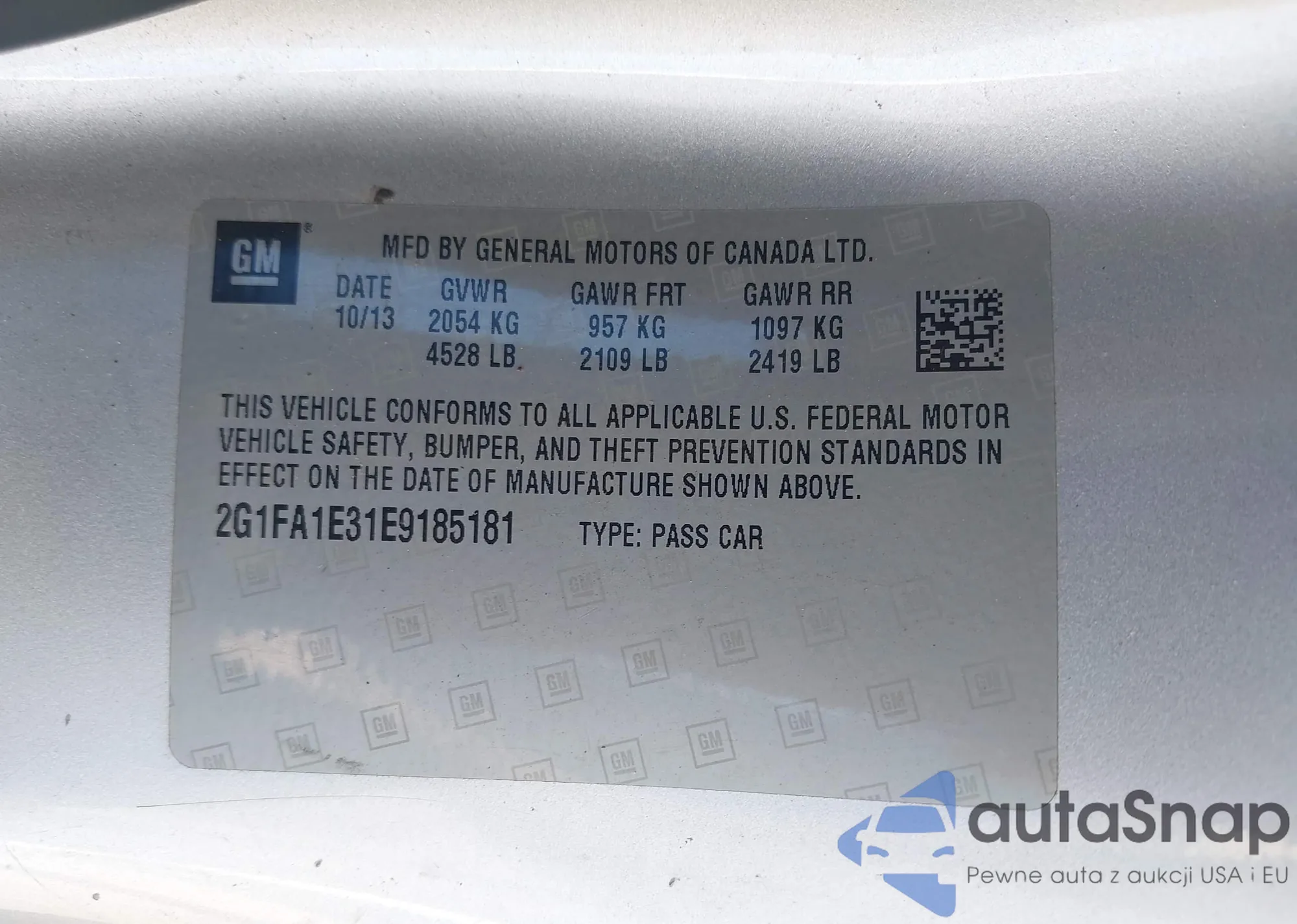 VIN: 2G1FA1E31E9185181