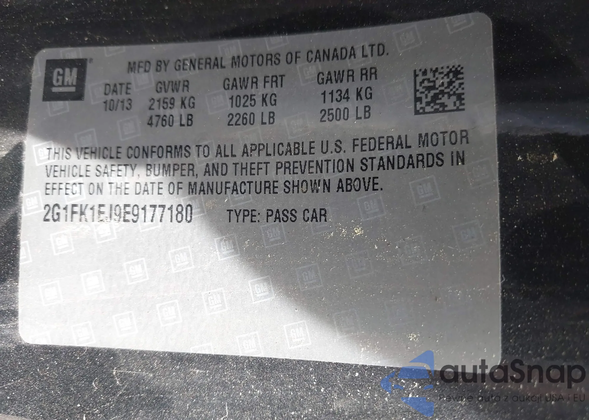 VIN: 2G1FK1EJ9E9177180