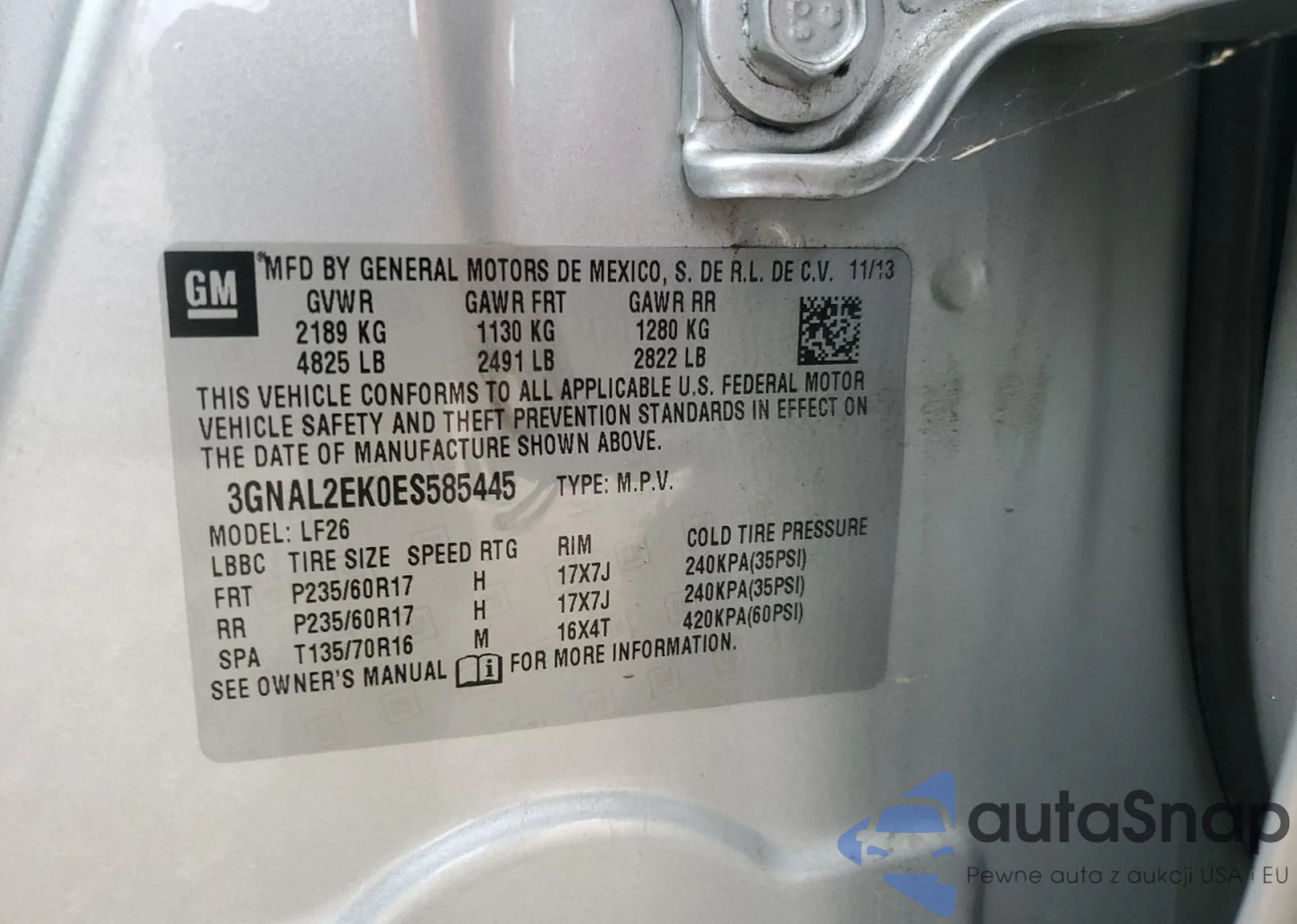 Samochód Chevrolet Captiva 2014 (VIN 3GNAL2EK0ES585445) sprzedaje go niezweryfikowany sprzedawca. Zalecamy raport Carfax i potwierdzenie możliwości rejestracji pojazdu przed zakupem.