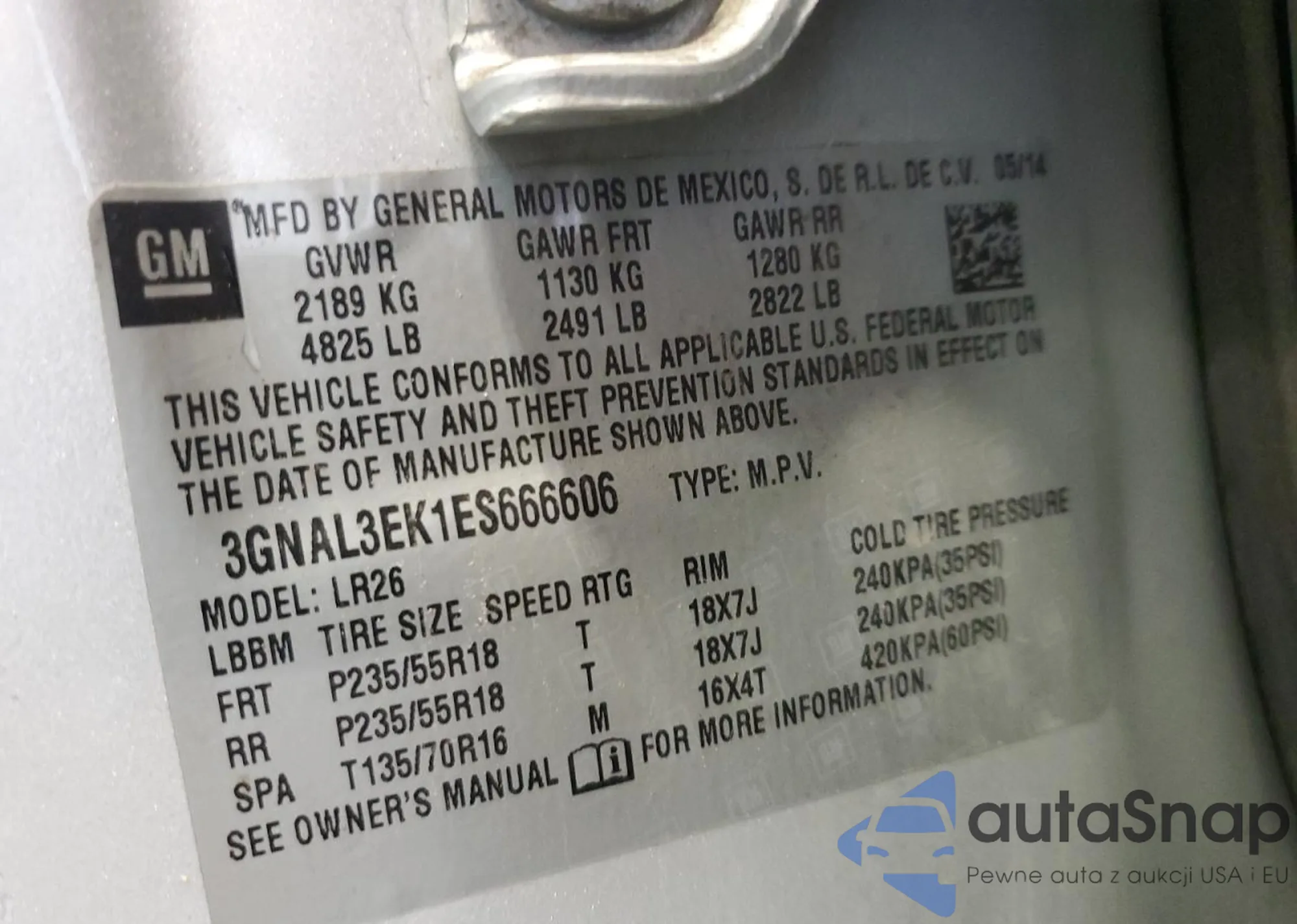 VIN: 3GNAL3EK1ES666606
